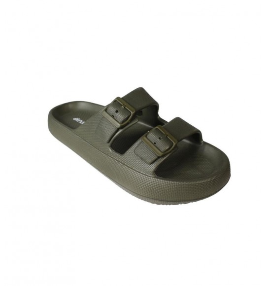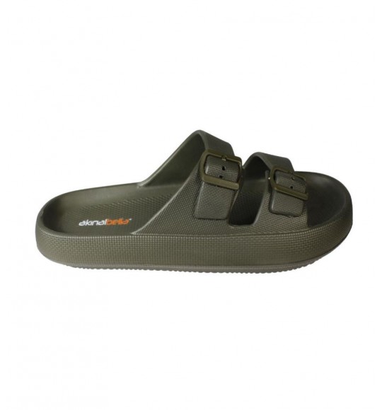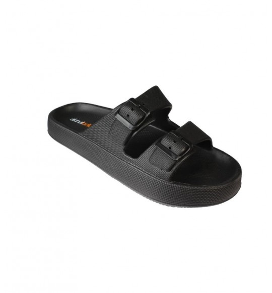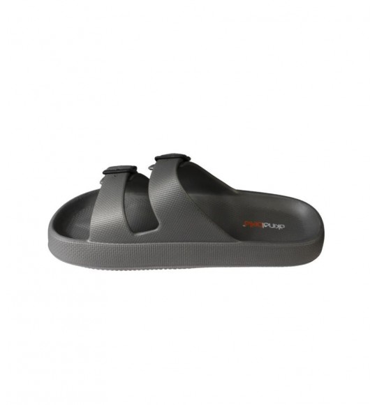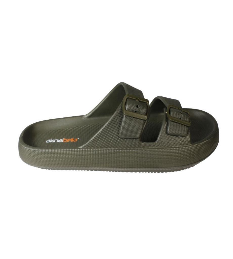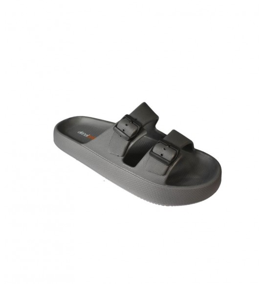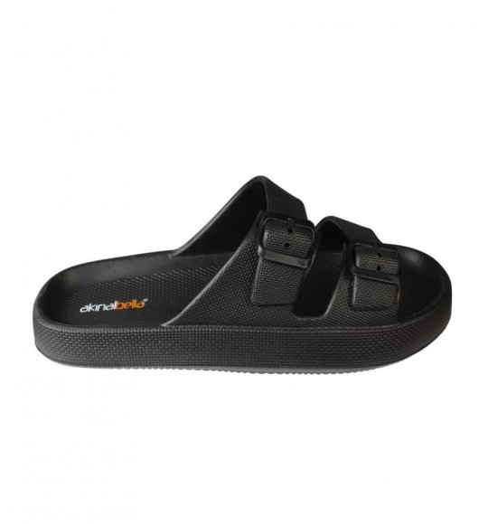 AKINBELLA Erkek Siyah Gri 46-47 Numara Cift Bant Tokalı Kauçuk Taban Deniz Havuz Bahçe Terliği