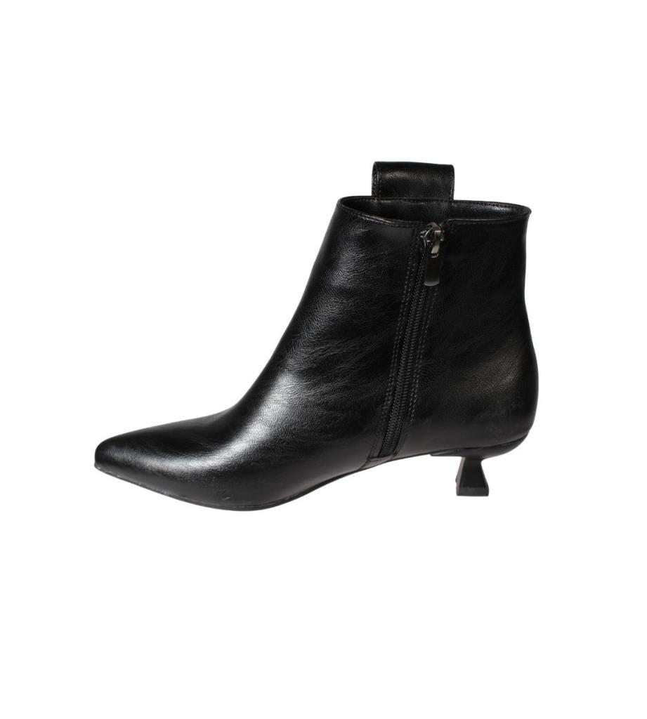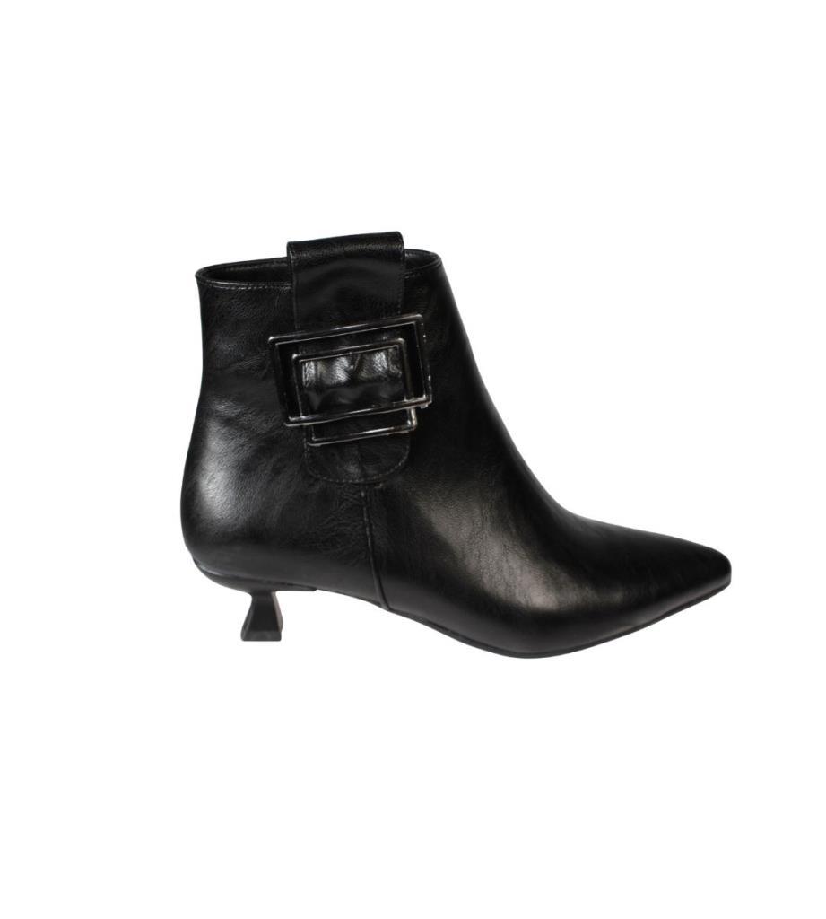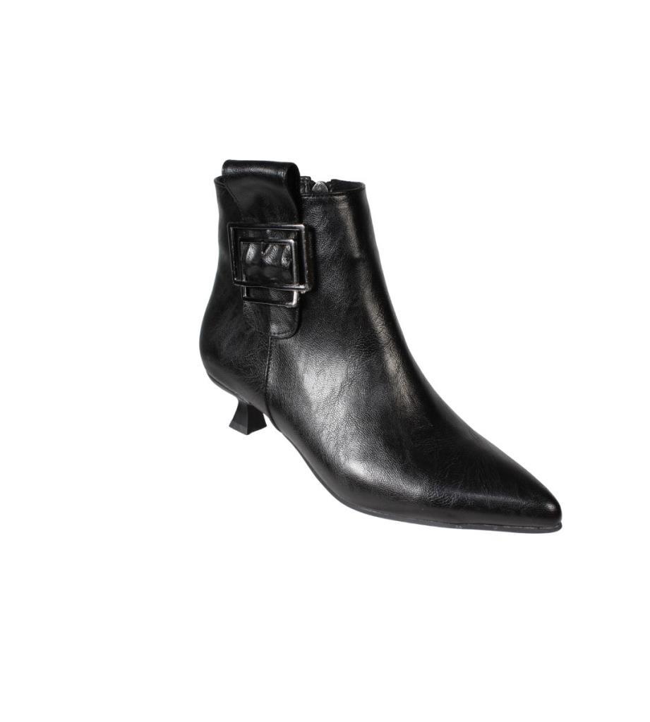 YAZKIŞ Kadın Siyah Cilt Kare Toka Sivri Burun 4cm İnce Fındık Topuk Bot