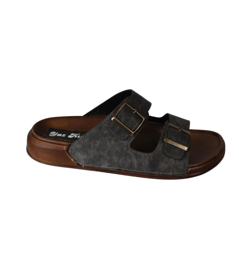 YAZKIŞ Erkek Gri Çift Tokalı Rahat taban Terlik