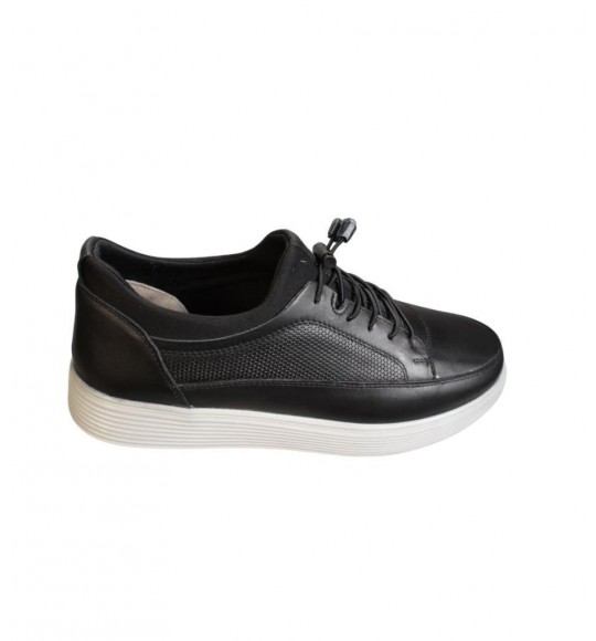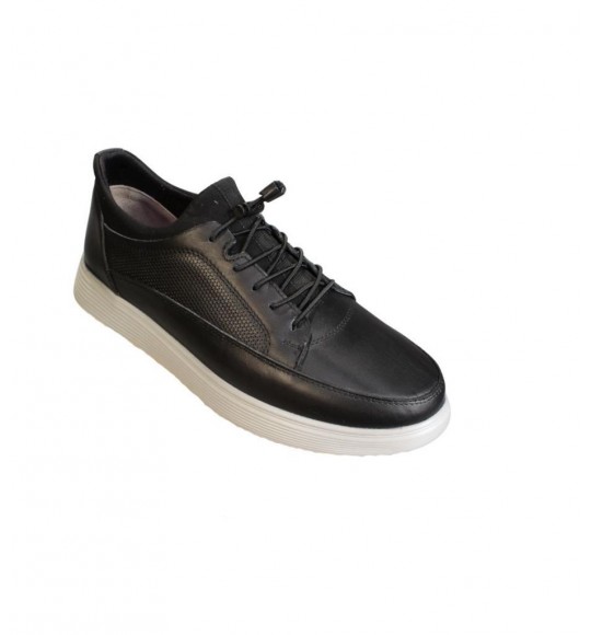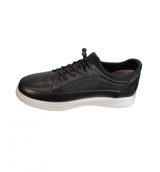 YAZKIŞ Erkek Hakiki Deri Siyah Bağcıksız Comfor Jel Beyaz Taban Günlük Ayakkabı