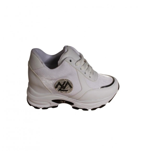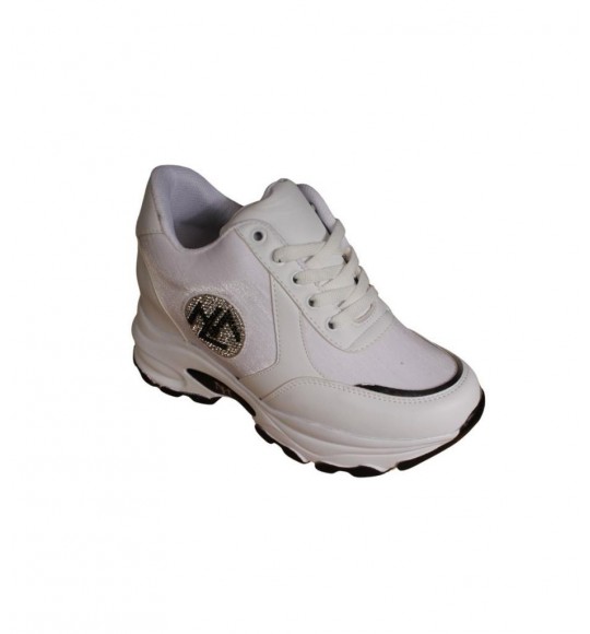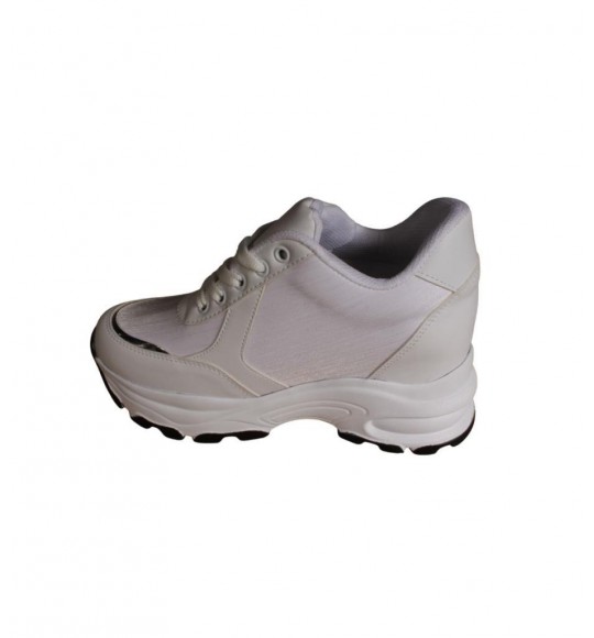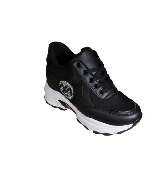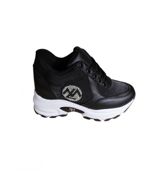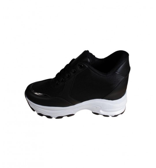 YAZKIŞ Kadın Siyah Beyaz Parlak Kumaş Taşlı 8cm İçten Gizli Topuk Fashıon Günlük Spor Ayakkabı