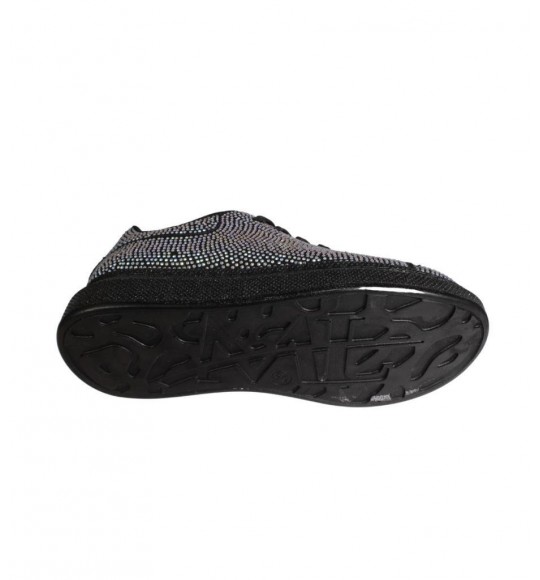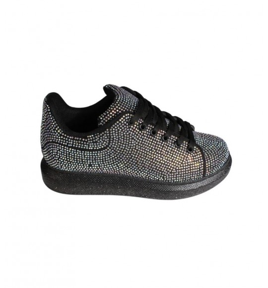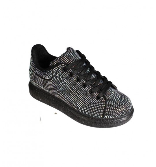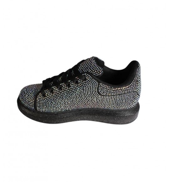 YAZKIŞ Kadın Siyah Cilt Her Yanı Taşlı Tabanı Simli Fashıon Günlük Spor Ayakkabı