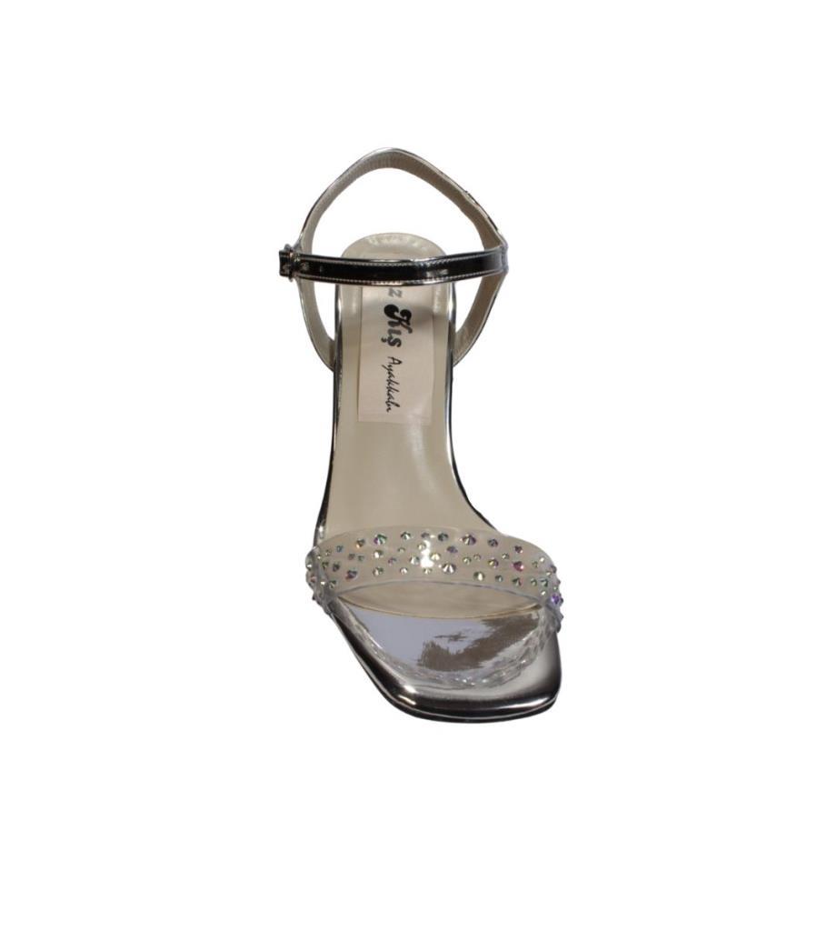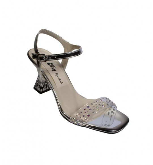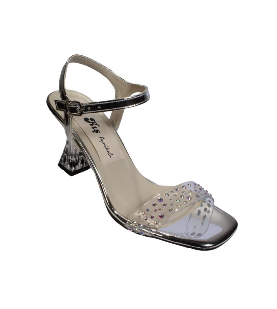 YAZKIŞ Kadın Platin Gümüş Şeffaf Taşlı Bantlı 8cm Kadeh Topuklu Düğün Nişan Abiye Ayakkabı
