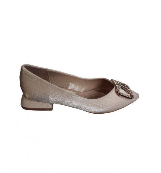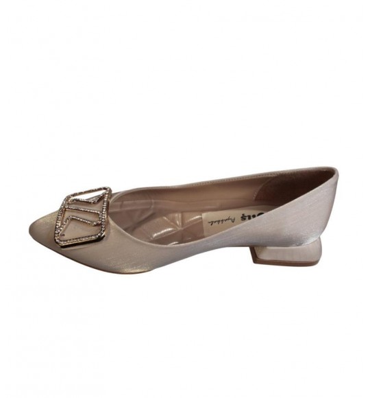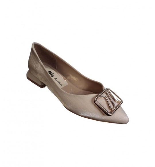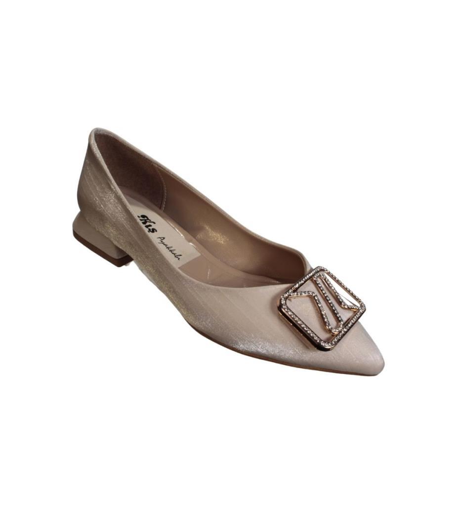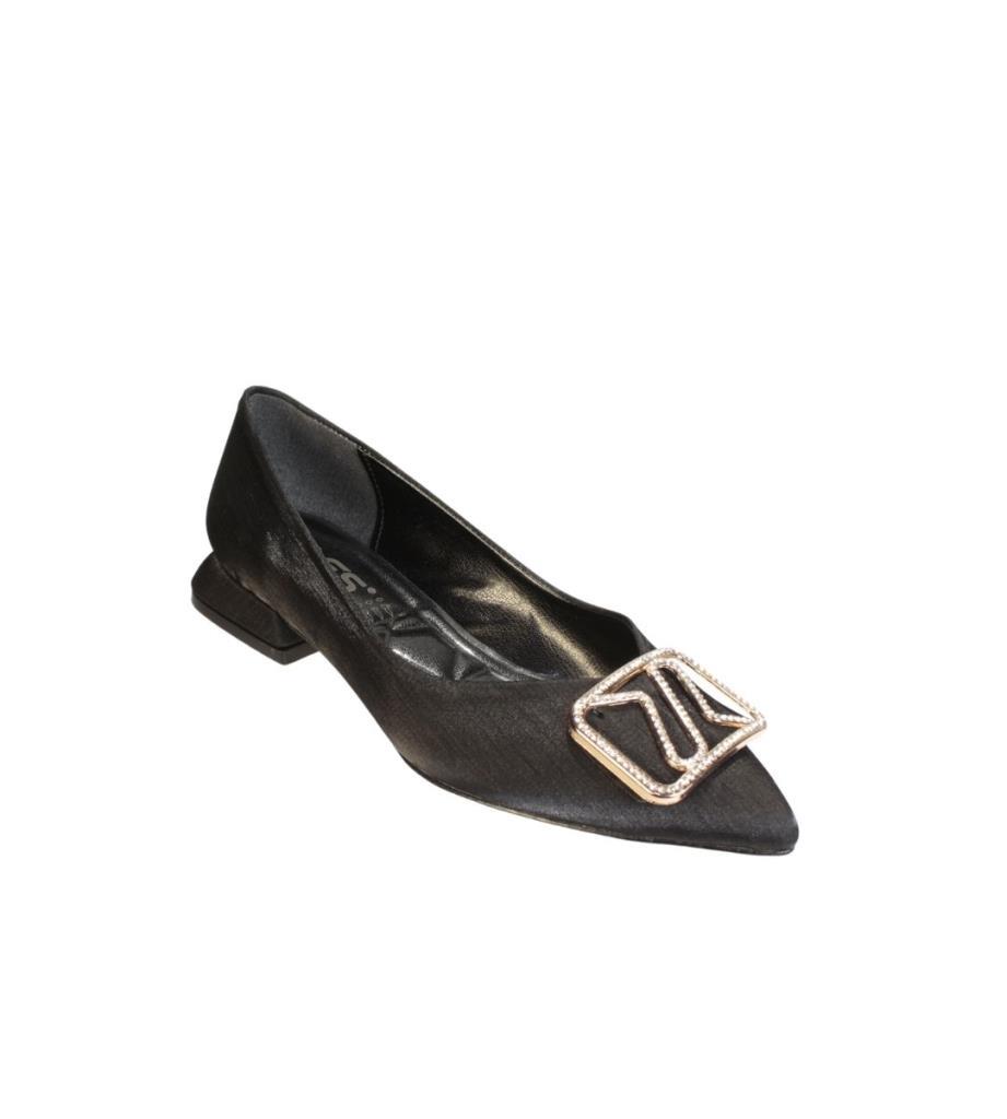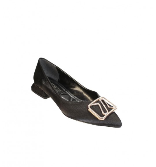 YAZKIŞ Kadın Siyah Altın Parlak Saten Üzeri Tokalı Babet