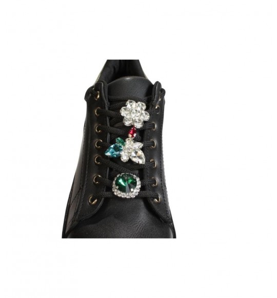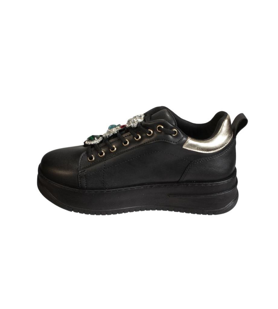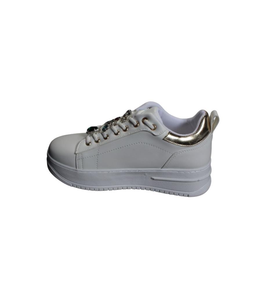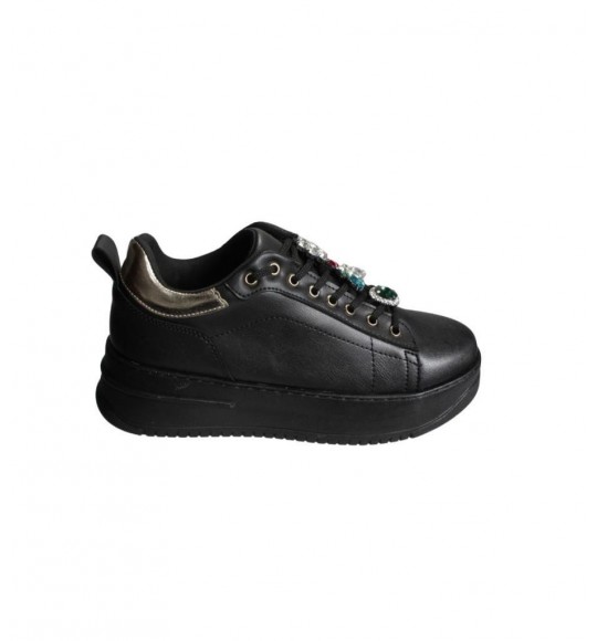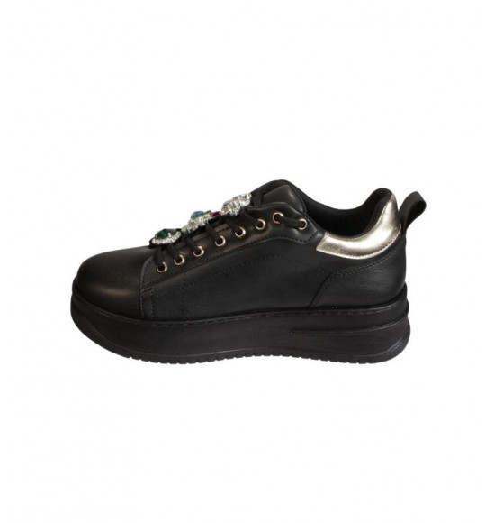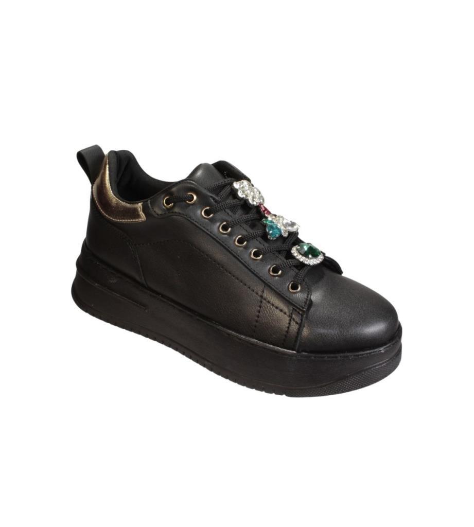 YAZKIŞ Kadın Siyah Beyaz Cilt Bağcıkları Süs Detaylı Arkası Gold Holıhanlı 5cm Kalın Taban Fashıon Spor Ayakkabı