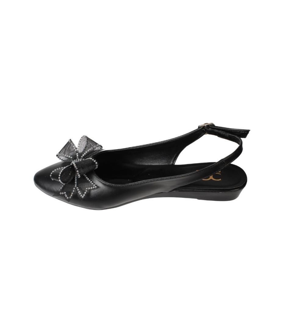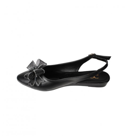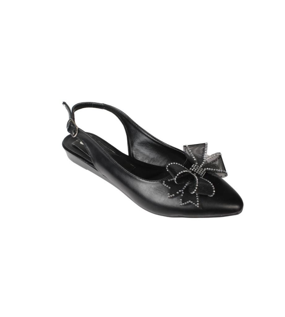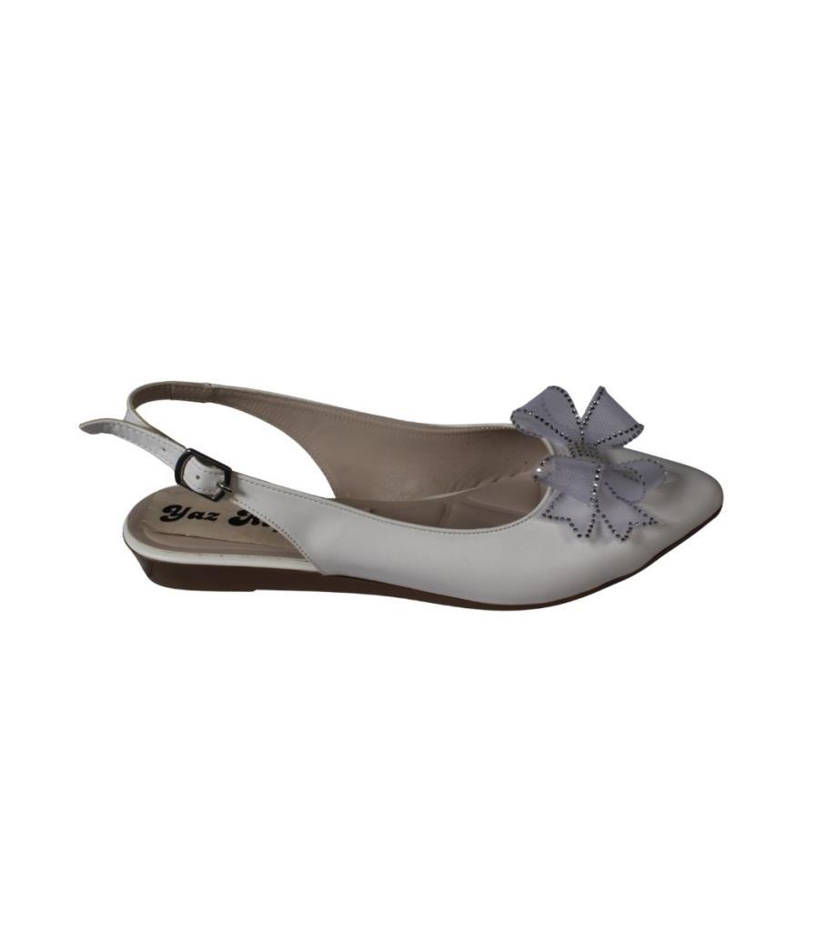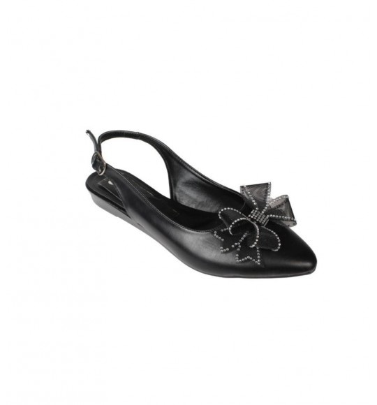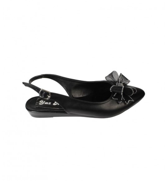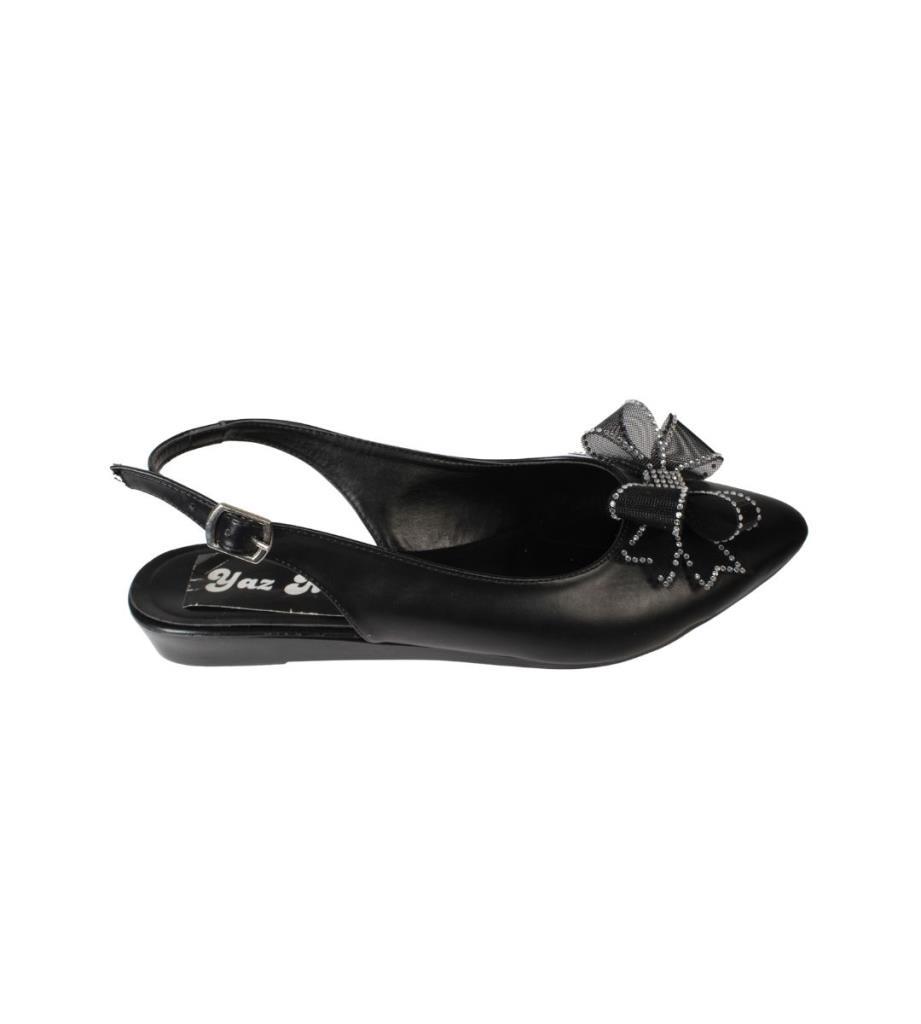 YAZKIŞ Kadın Siyah Beyaz Cilt Üzeri Tül Fiyonklu Önü kapalı Arkası Açık Babet