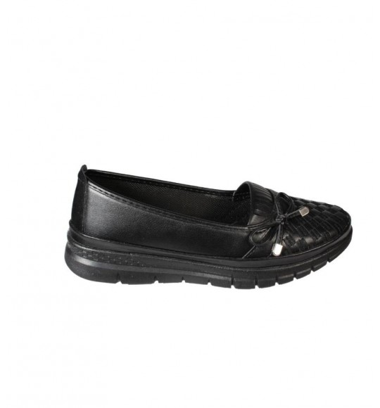 YAZKIŞ KADIN Siyah Cilt Üzeri Fiyonklu 37-41 Numara Comfort Taban Anne Ayakkabısı