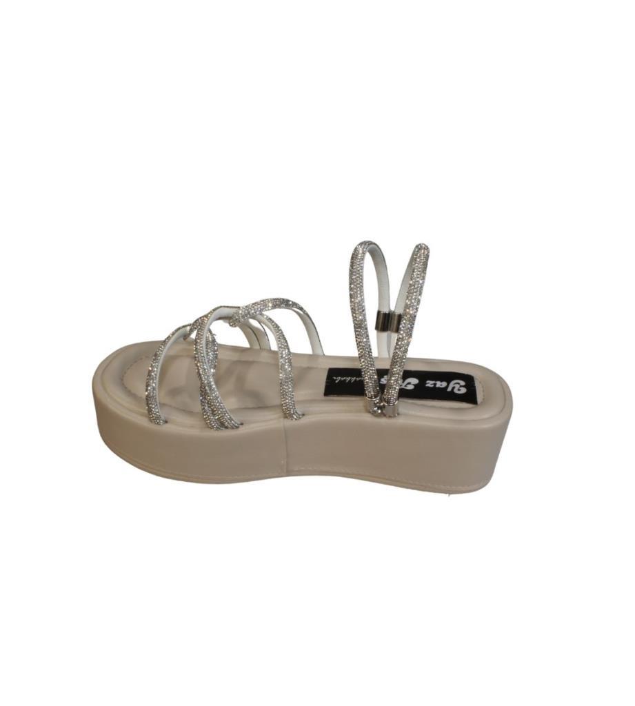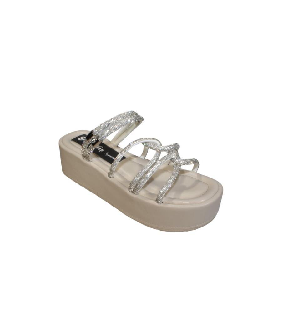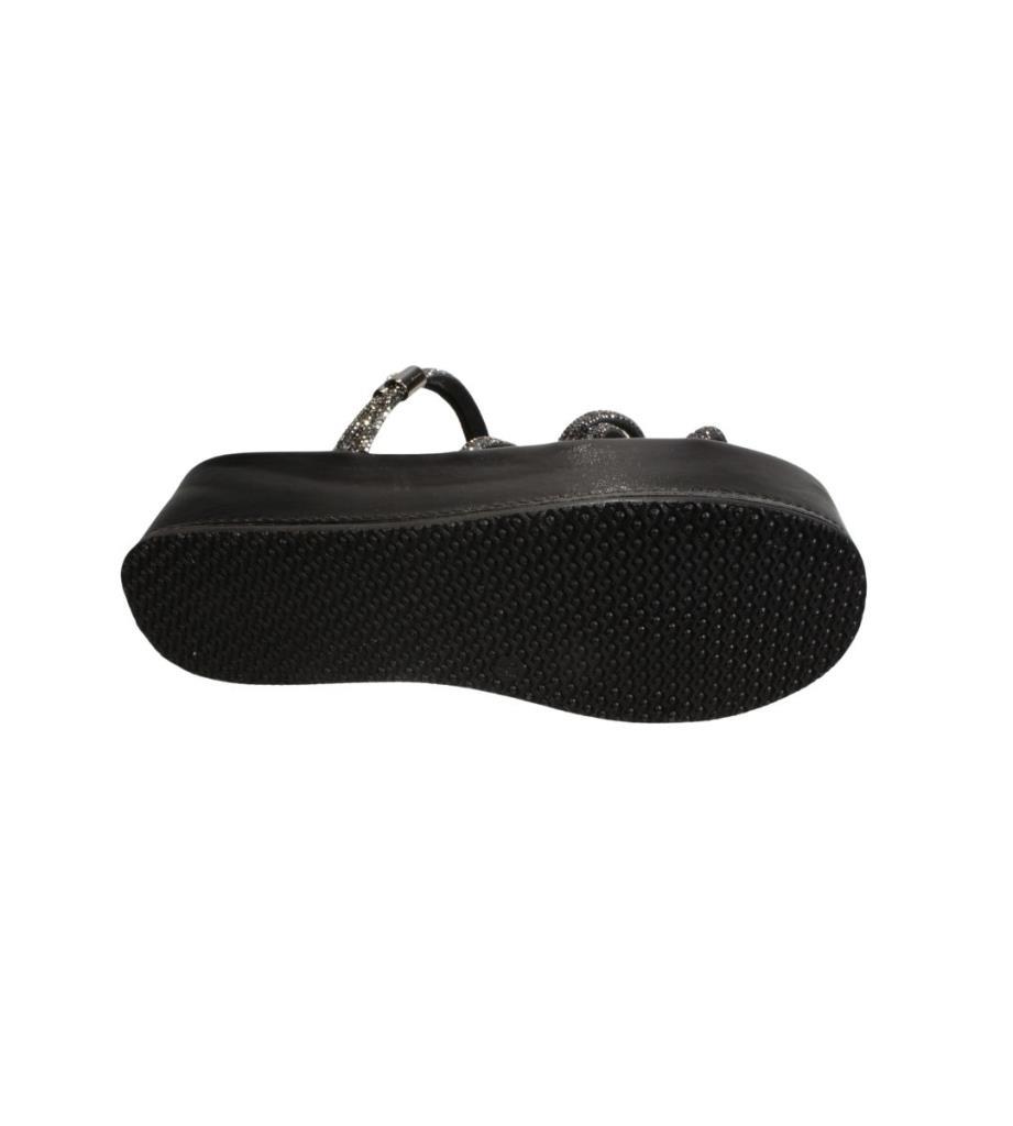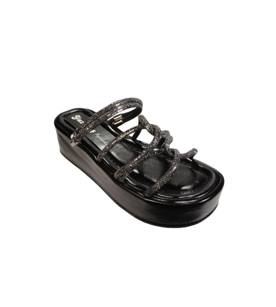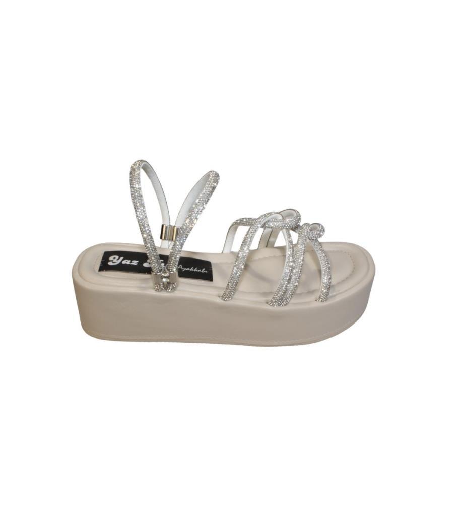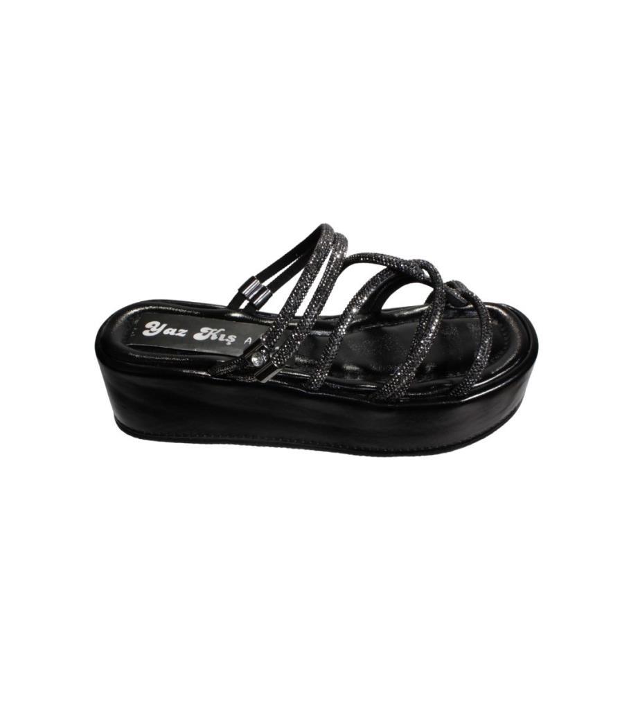 YAZKIŞ Kadın Siyah Krem Üzeri Taş Çapraz Atkılı 6cm Kalın Taban Terlik