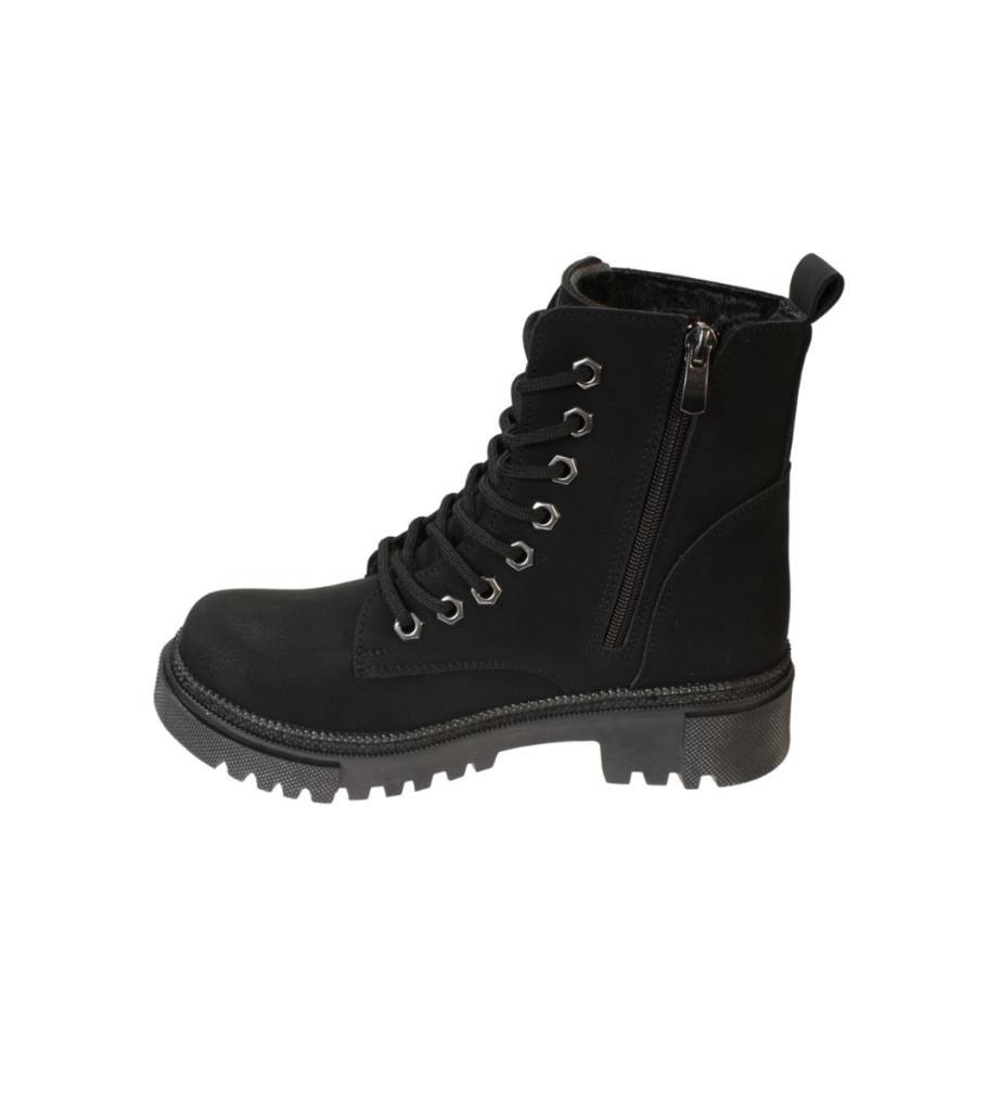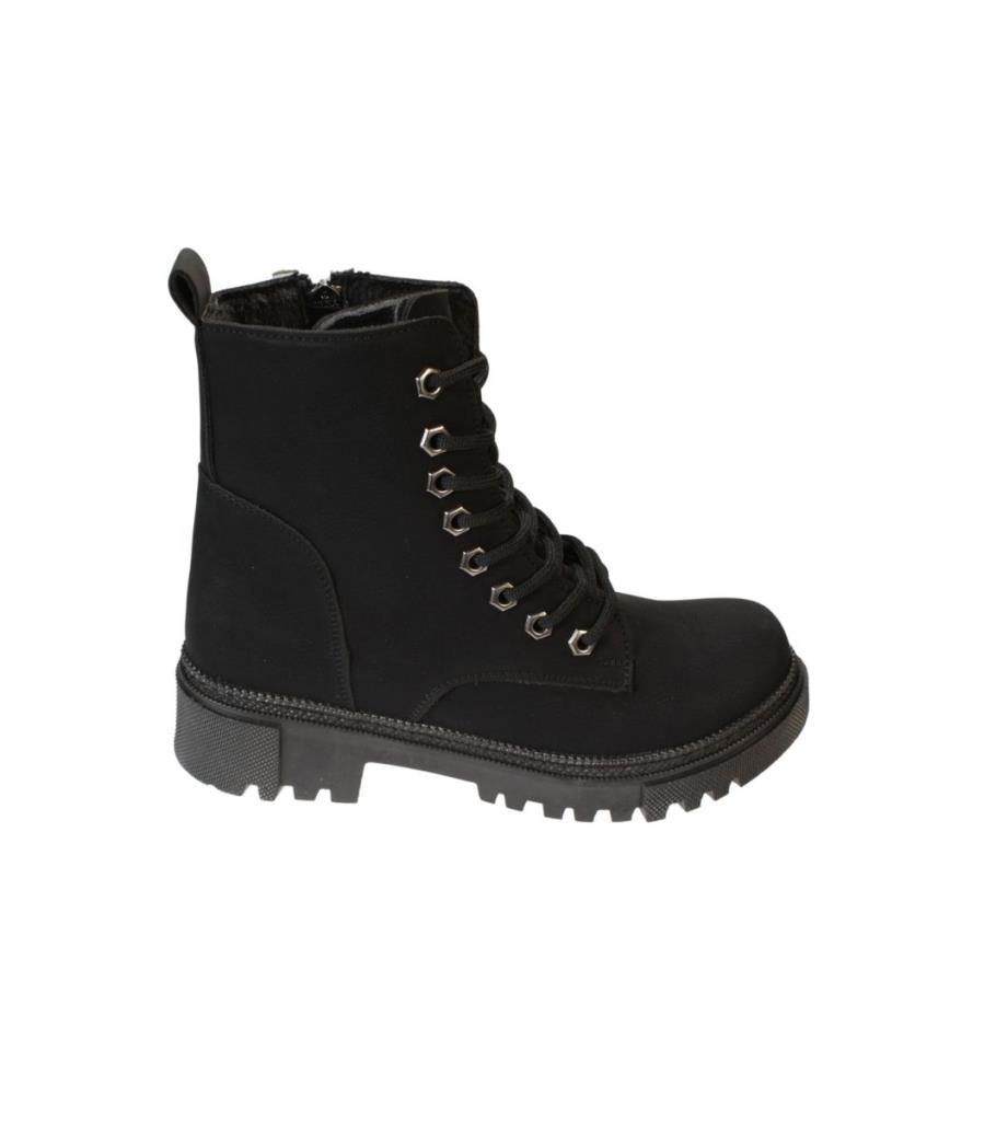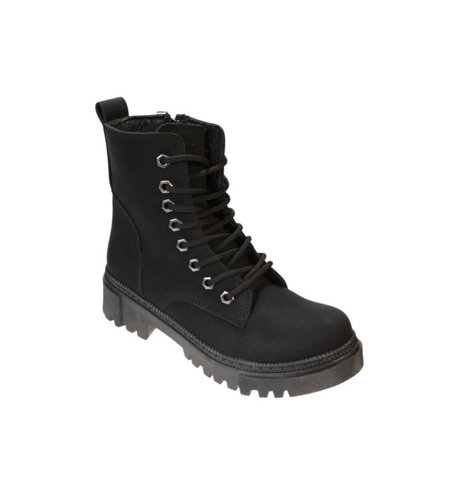 YAZKIŞ Kadın Siyah Mat Cilt Bağcıklı Fermuaralı 14cm Bilekboyu Düz Termo Taban Postal Bot
