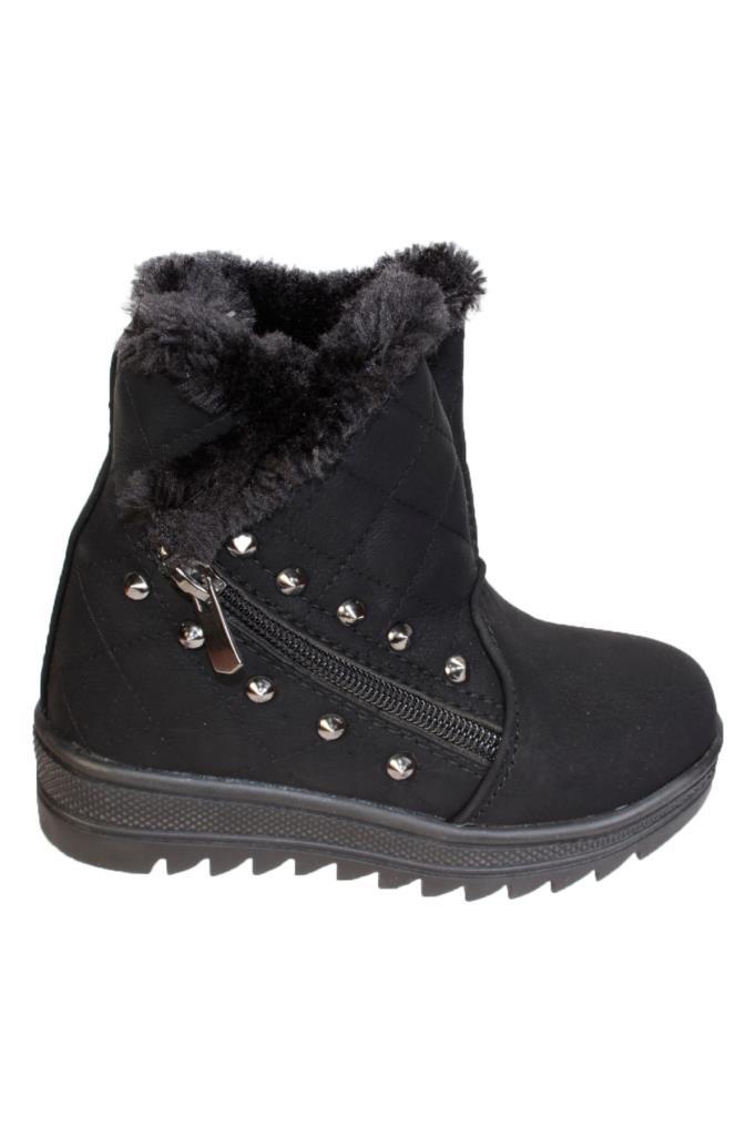 YAZKIŞ Kız Çocuk 26-30 Siyah İçi Kürklü Fermuarlı Termo Kaymaz Taban Bot