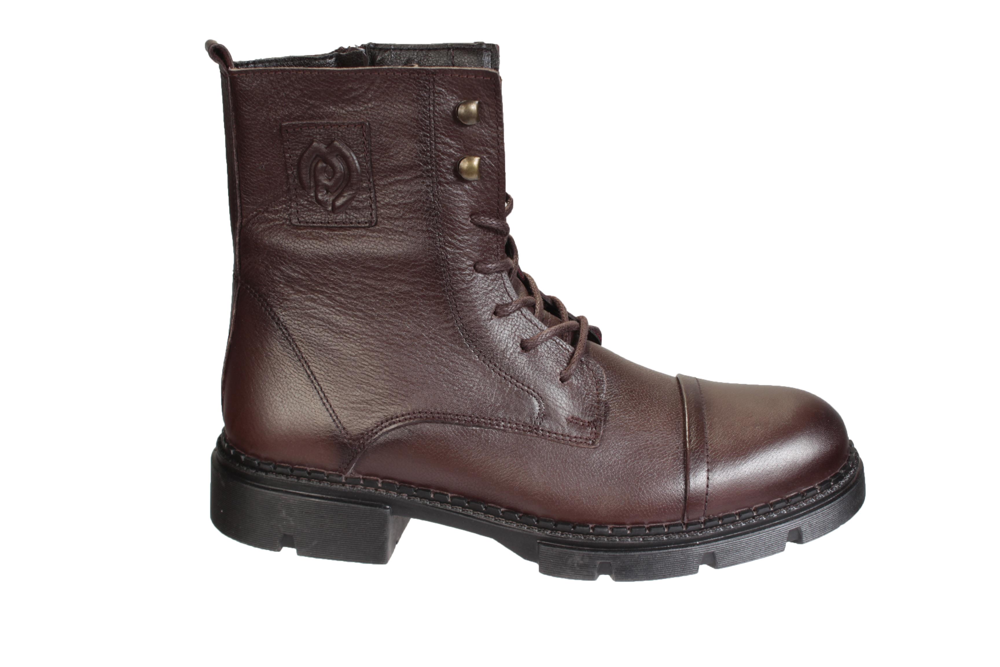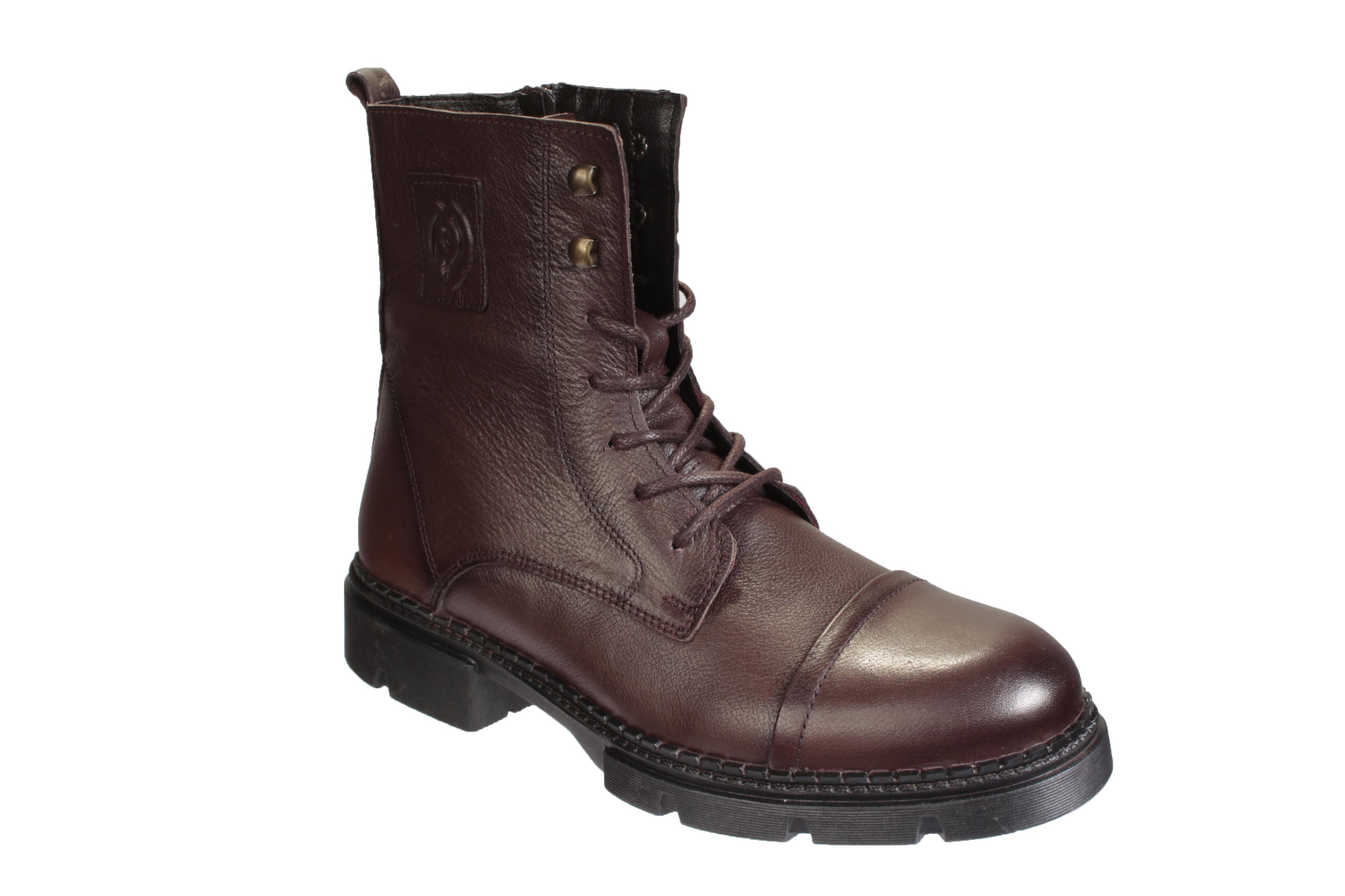M.P. Erkek Siyah Hakiki Deri Fermuarlı Bağcıklı Bilek Boyu 18cm Termo Taban Postal Bot