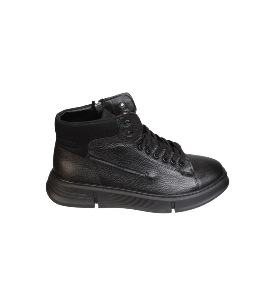 M.P Erkek Siyah Hakiki Deri Fermuarlı Bilekten Soğuğa Dayanıklı Bot