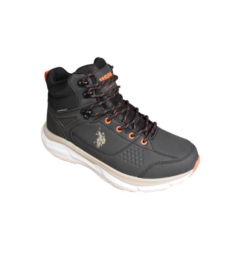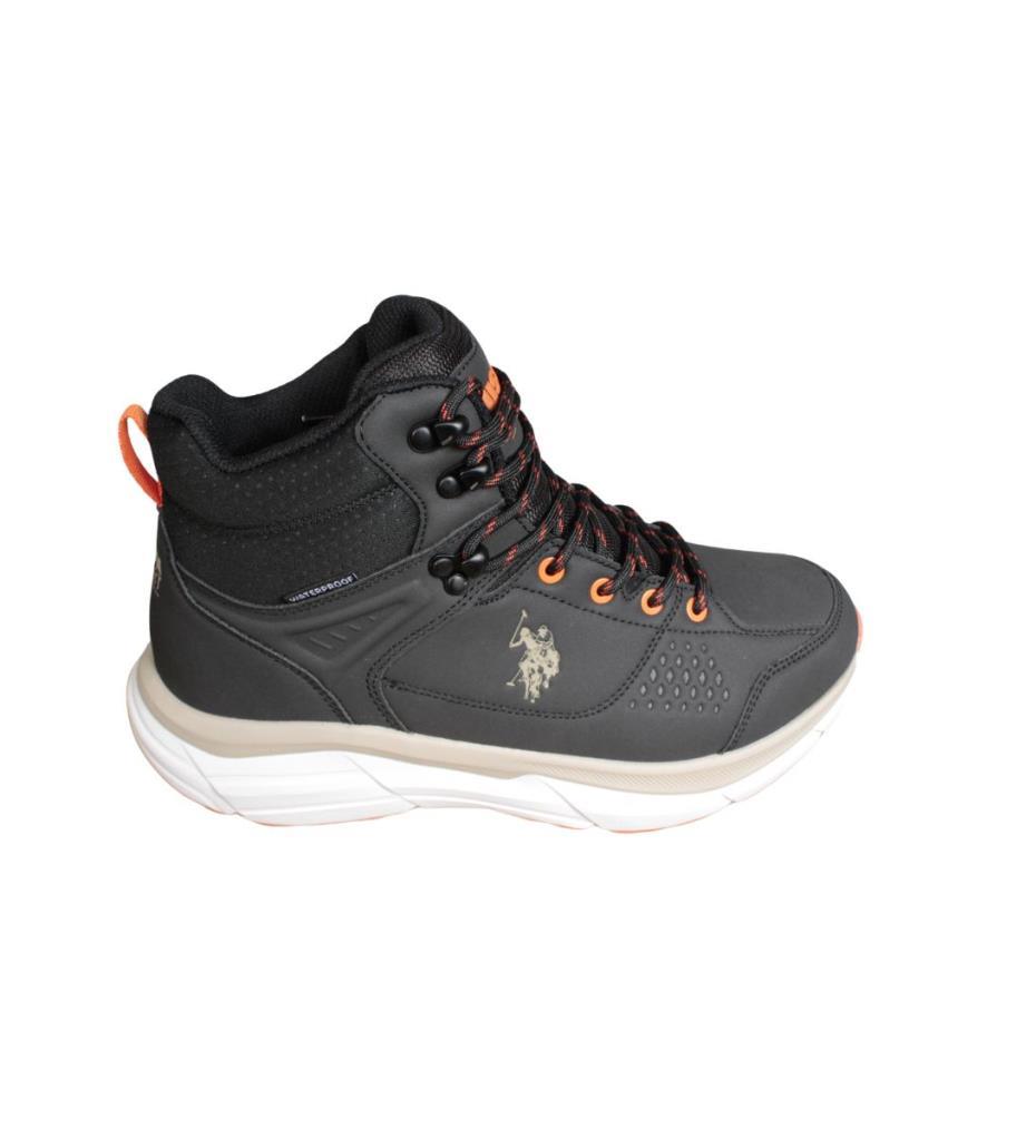 U.S. POLO Erkek Siyah Gri Cilt Bağcıklı Bilekli Waterproff Kalın Taban Spor Bot
