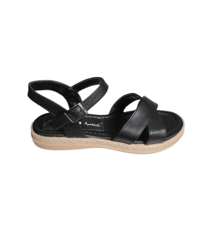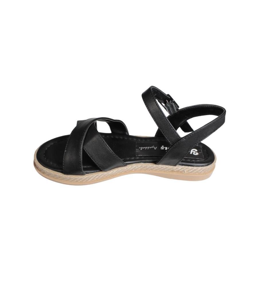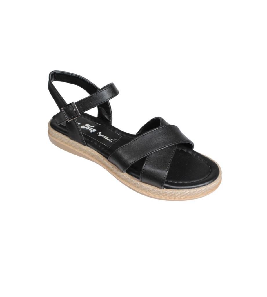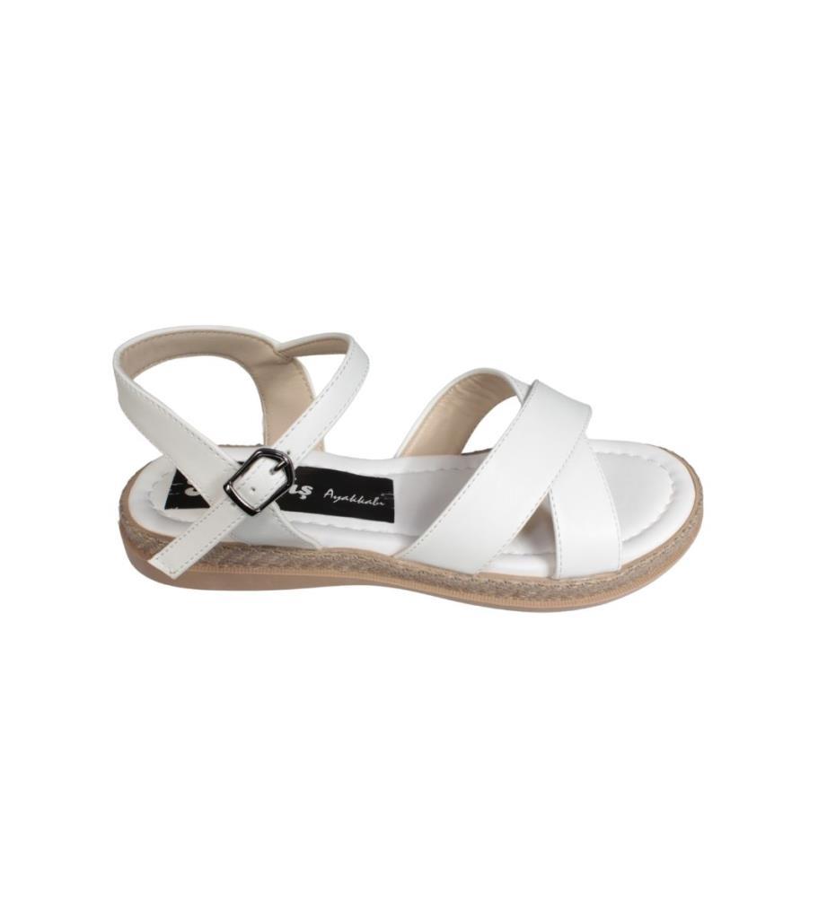 YAZKIŞ Kadın Siyah Beyaz Üzeri Çapraz Bantlı Bilekten Bağlamalı Düz Taban Sandalet