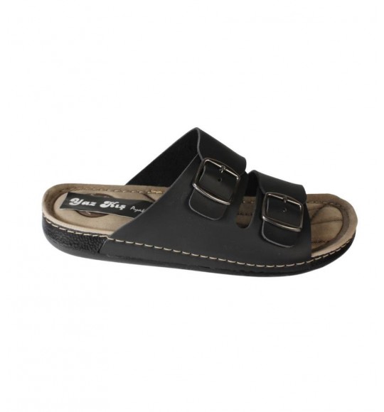 YAZKIŞ Erkek Siyah Çift Tokalı 46-47 Numara Böyük Beden Terlik