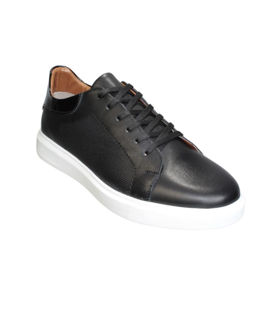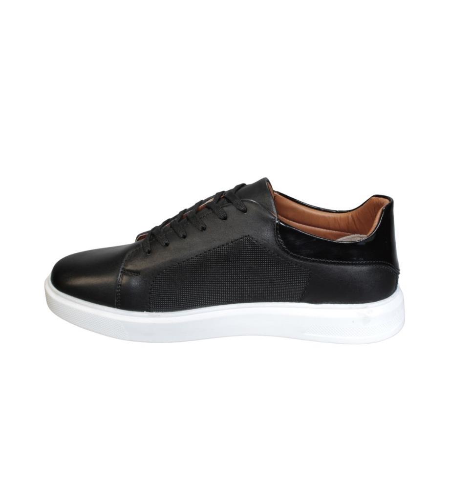YAZKIŞ Erkek Siyah Cilt Hakiki Deri Beyaz Tabn Sneacer Spor Ayakkabı