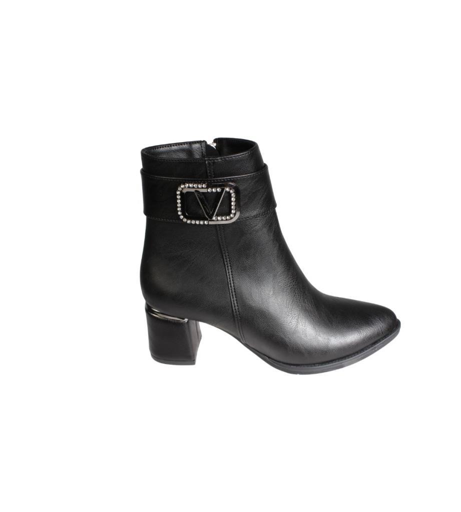 YAZKIŞ Kadın 6cm Topuklu Taşlı Tokalı Fermuarlı Bot Bilek boyu 14cm <Topuklu Fashıon Bot