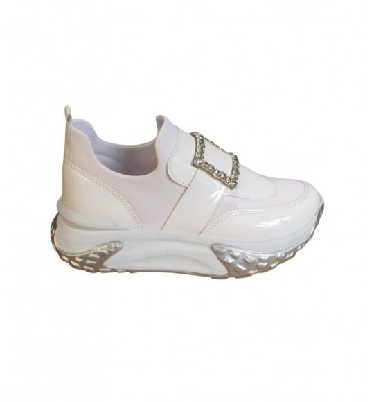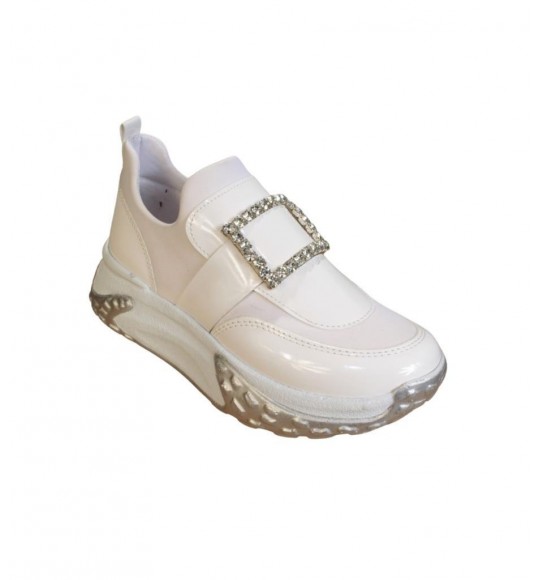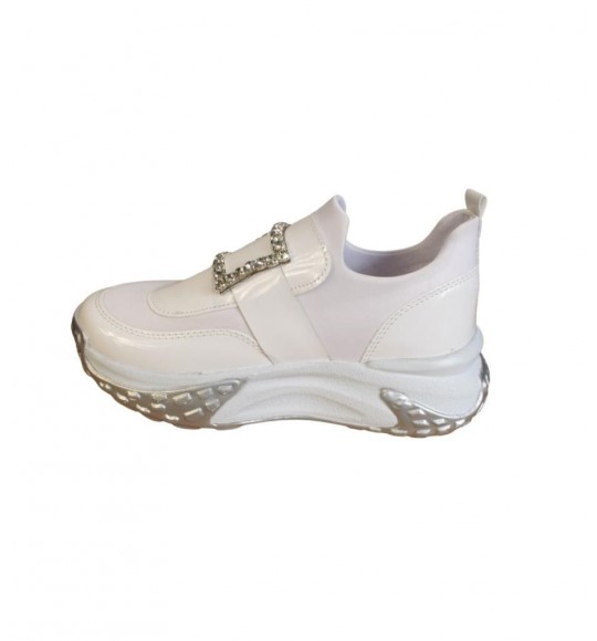 YAZKIŞ Kadın Beyaz Cilt Üzeri Taş Tokalı Streç Kumaş 5cm Kalın Taban Fashıon Spor Ayakkabı