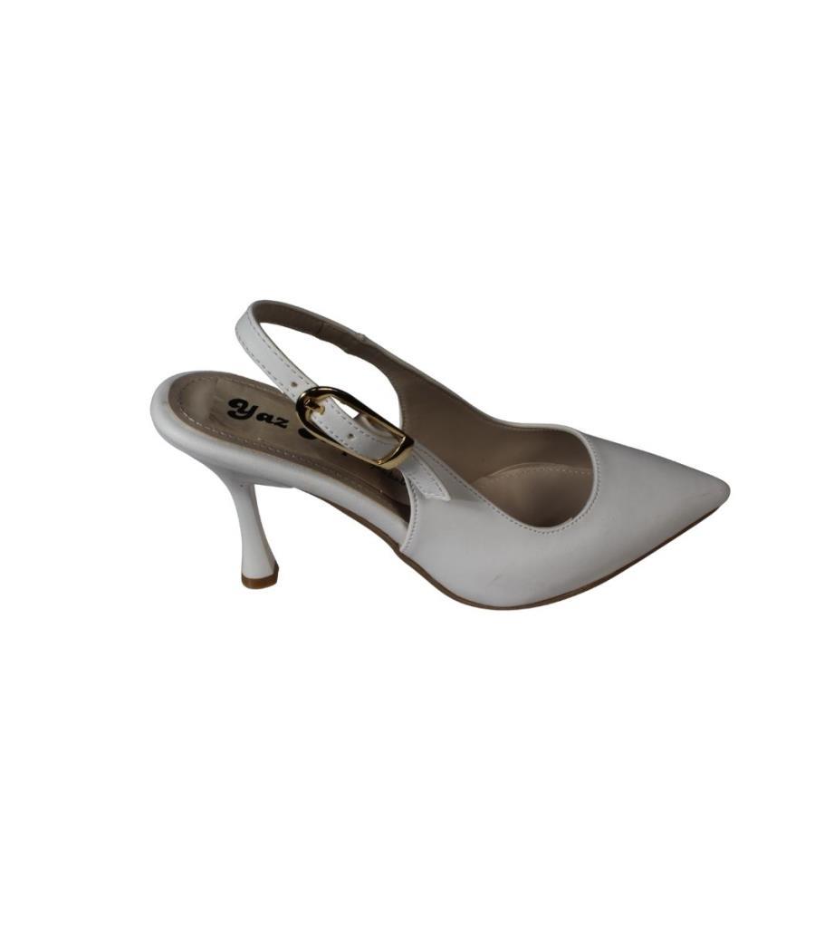 YAZKIŞ Kadın Beyaz Siyah 9cm Arkası Açık Abiye Ayakkabı