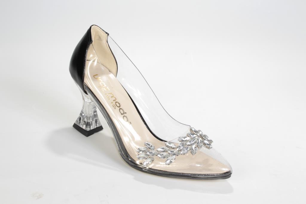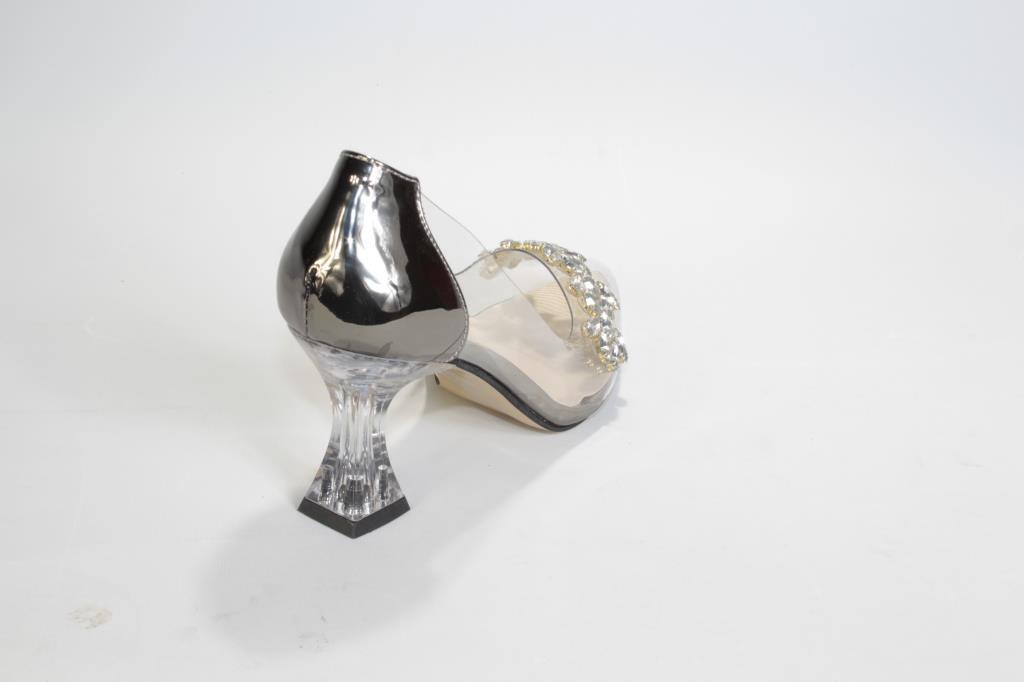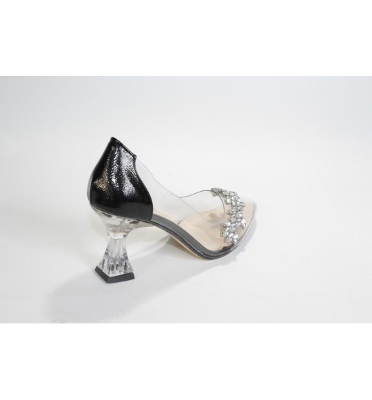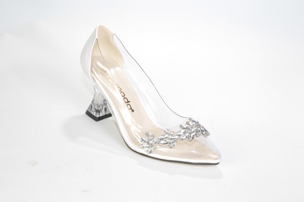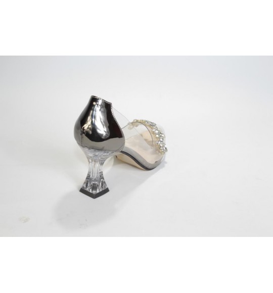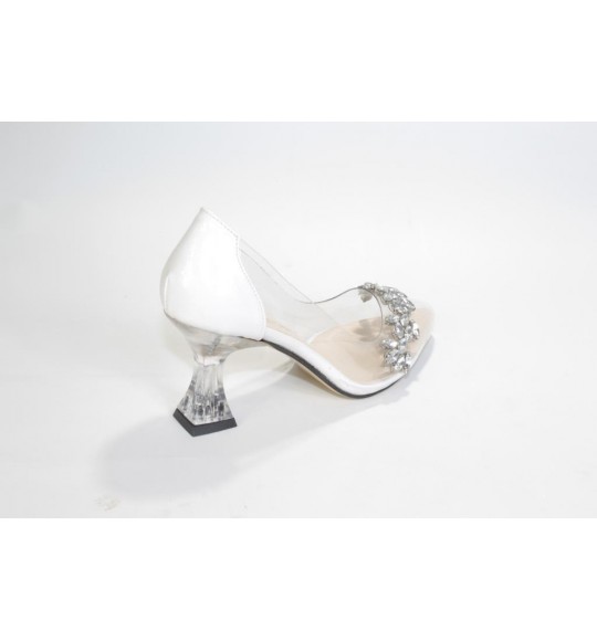 YAZKIŞ Kadın Beyaz Siyah Platin 8cm Kadeh Topuklu Şeffaf Üzeri Taşlı Düğün Nişan Abiye Ayakkabı