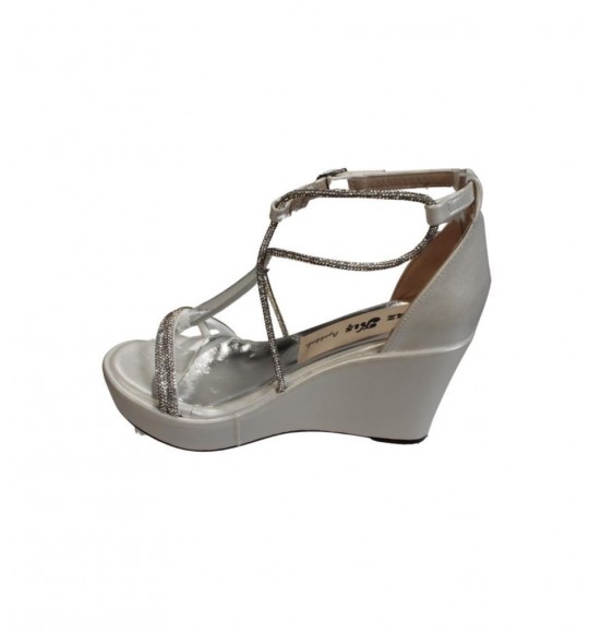 YAZKIŞ Kadın Beyaz(sedef) 9cm Dolgu Topuk 3cm Platform Çift Taş Çapraz Bantlı Abiye Ayakkabı