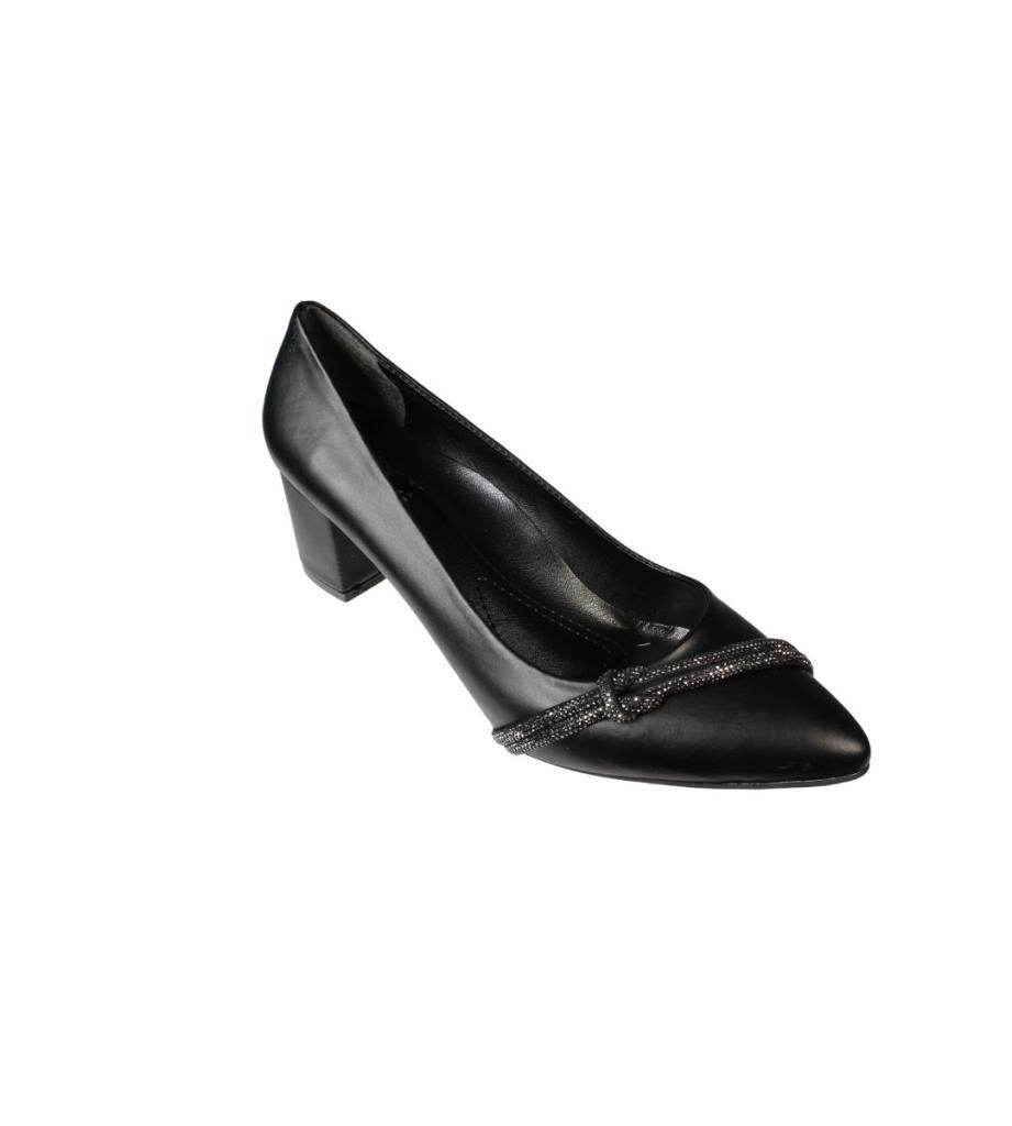 Zarif tasarımıyla dikkat çeken kalın topuklu Kadın siyah ayakkabı, şıklığınızı tamamlar.