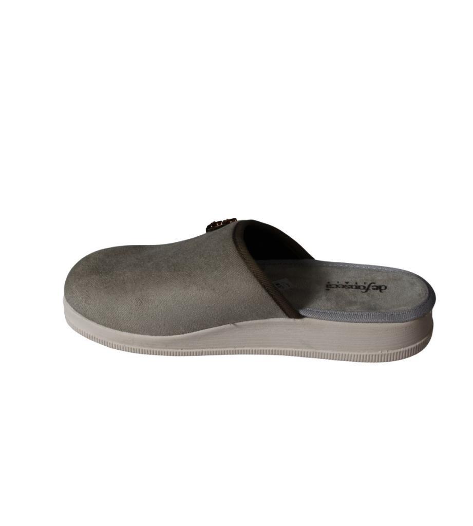 - Şık tasarımıyla dikkat çeken gri tokalı poli taban terlik, kış aylarında şıklığınızı tamamlar.