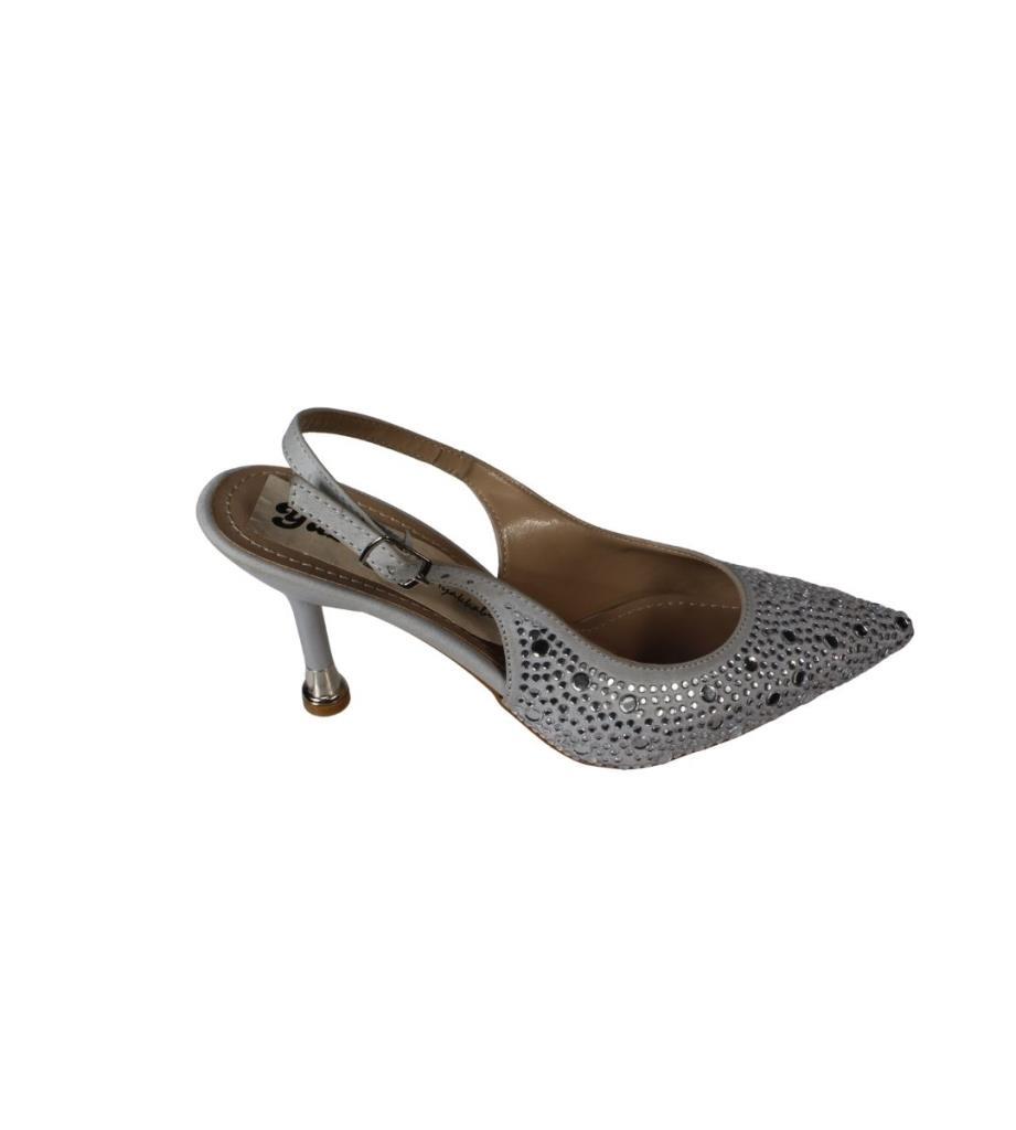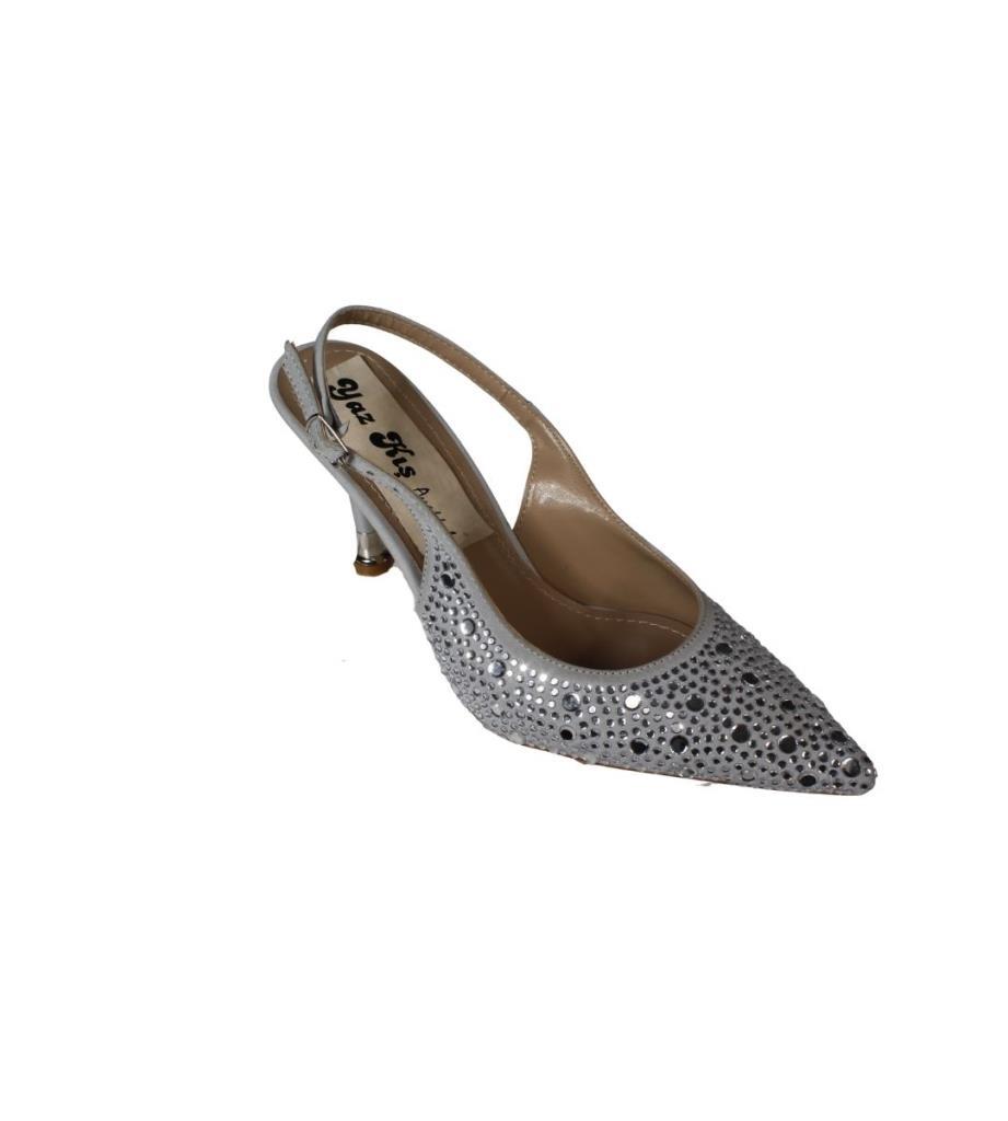 YAZKIŞ Kadın Gümüş Üzeri Taşlı Önü Sivri Arkası Açık 9cm İnce Topuklu ayakkabı
