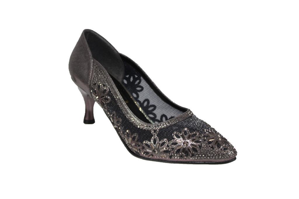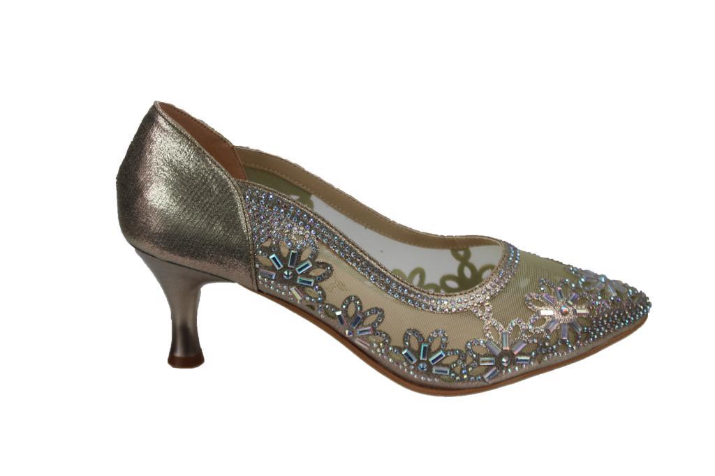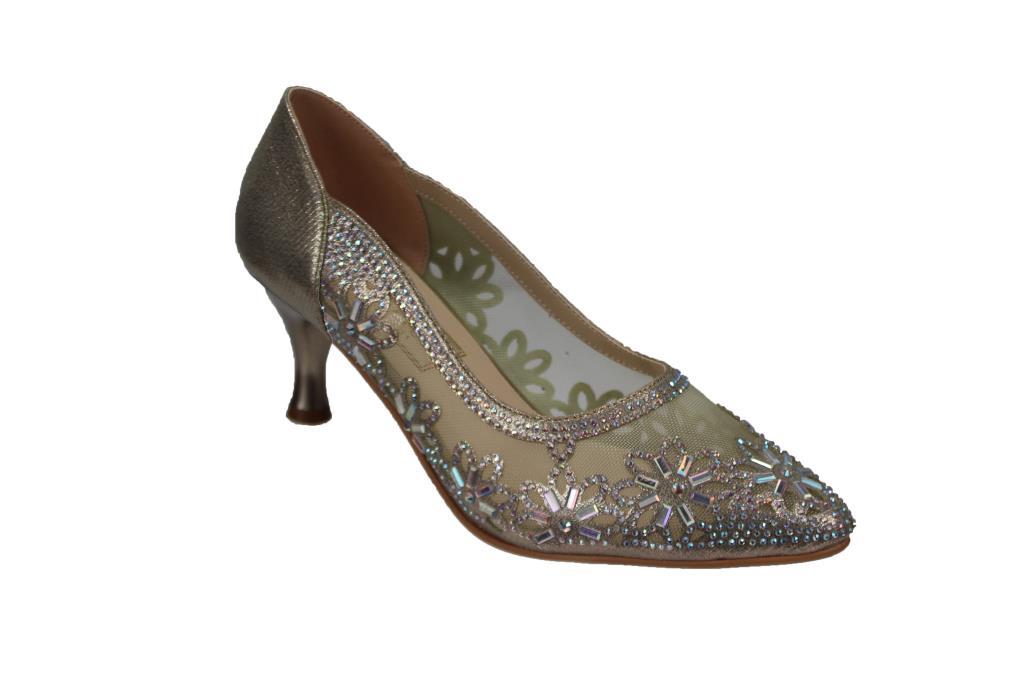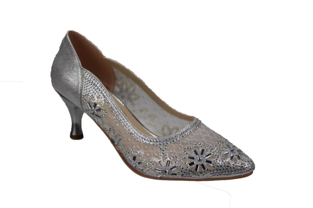 YAZKIŞ Kadın Platin Gümüş Altın 6cm Topuklu Tüllü Taşlı Düğün Nişan Mezuniyet Ayakkabı