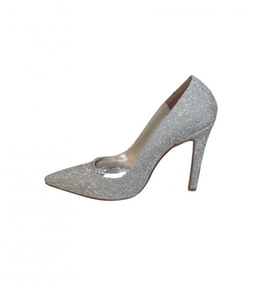YAZKIŞ Kadın Platin Gümüş Metalik Saten 11cm İnce Topuklu Stelletto Abiye Ayakkabı