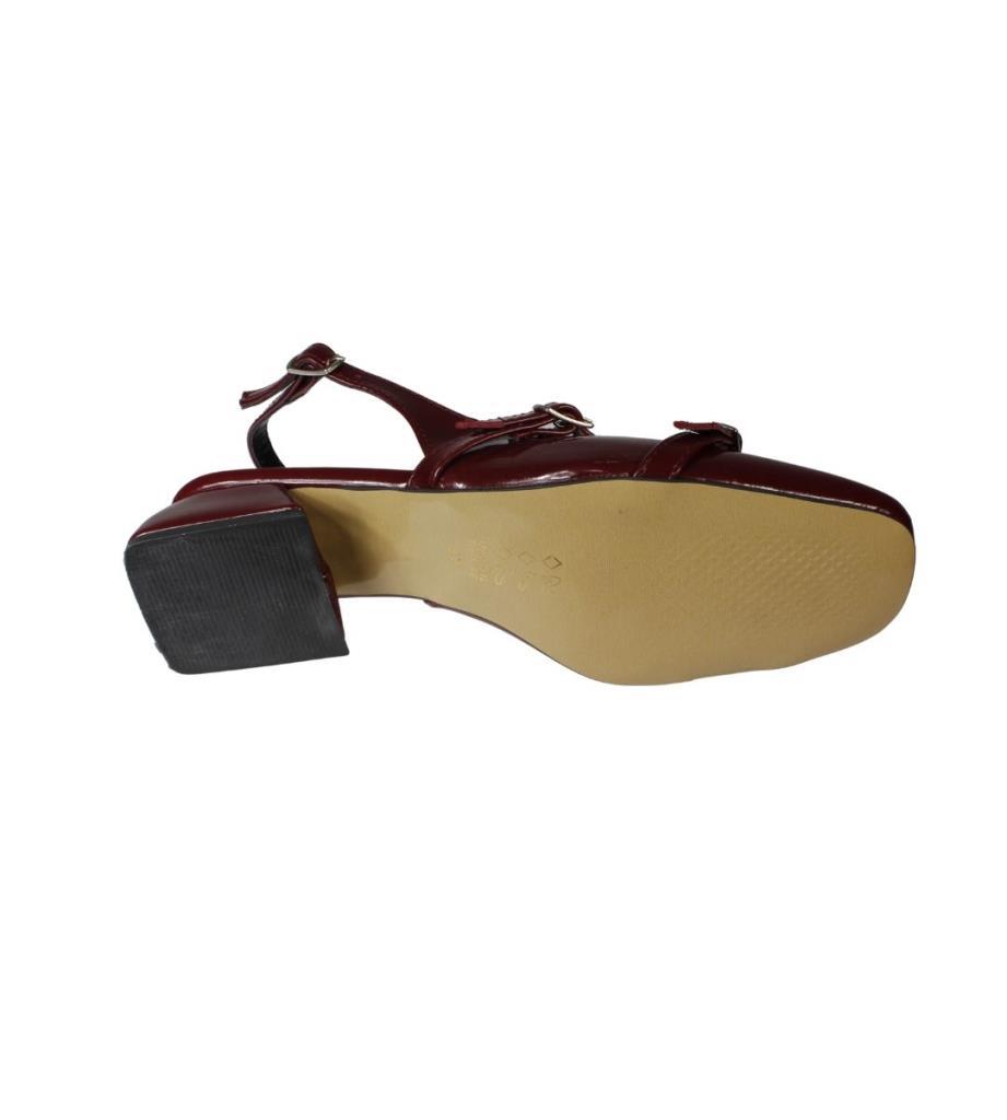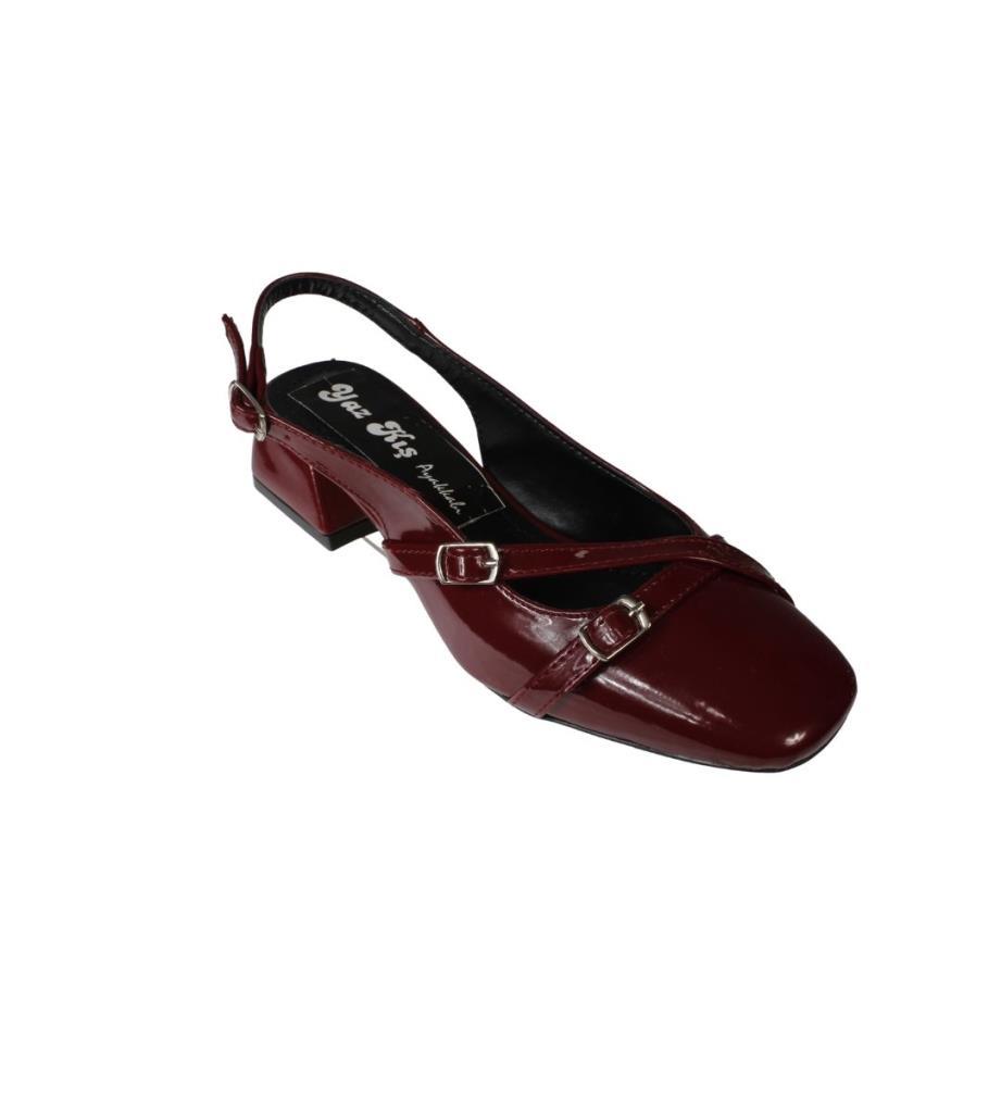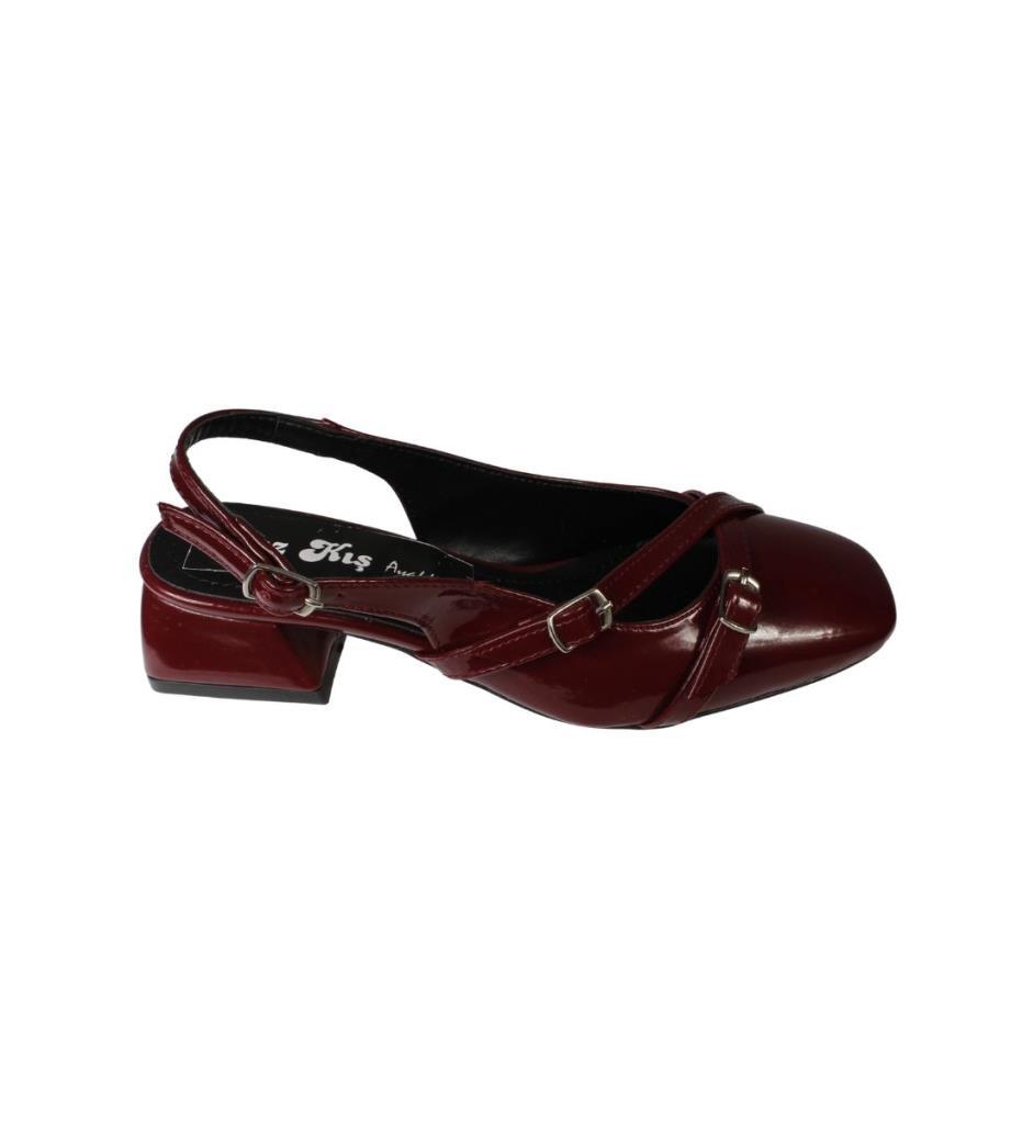 YAZKIŞ Kadın Ruğan Bordo Siyah Ten Çift Tokalı Küt Burun 3cm Topuklu Arkası Acık Ayakkabı