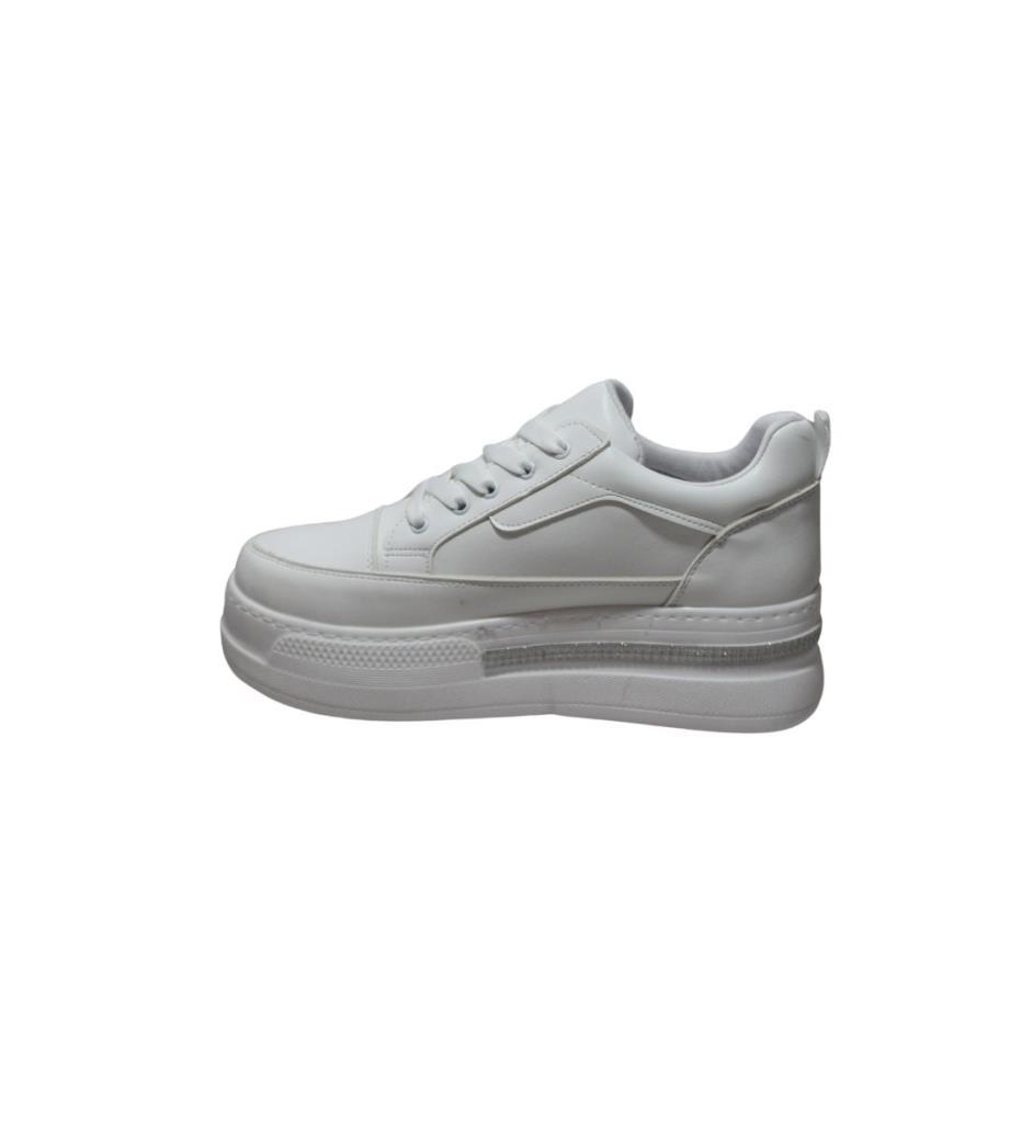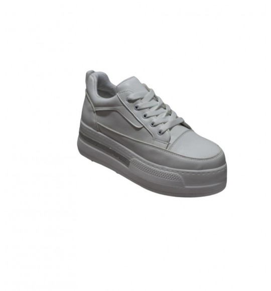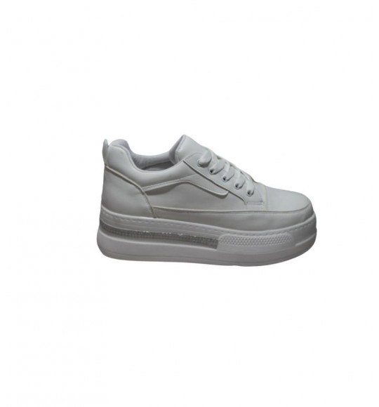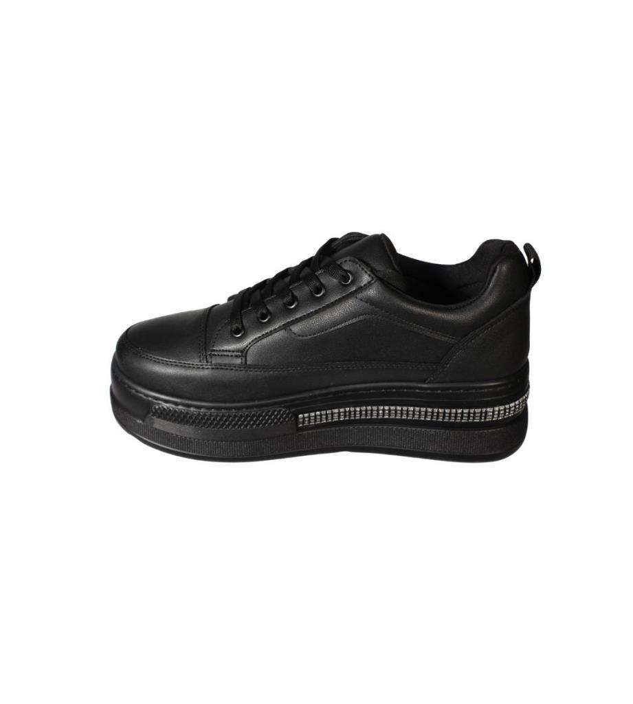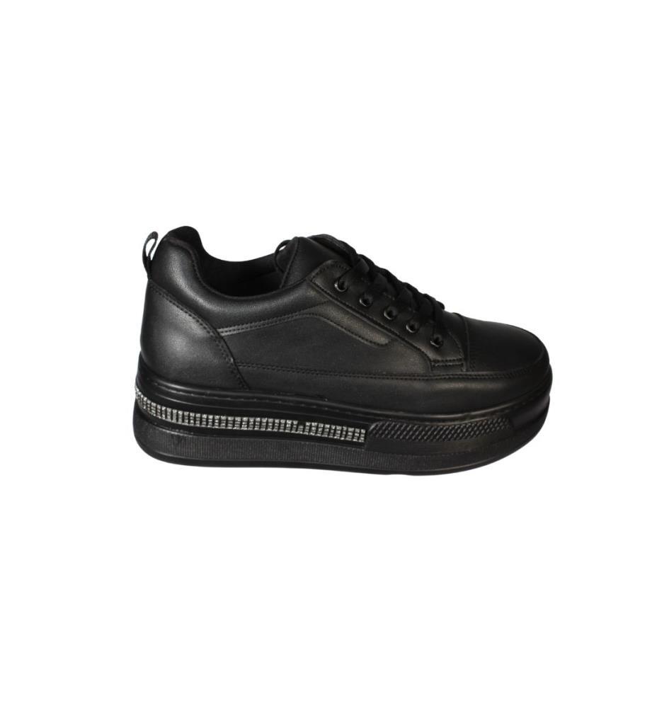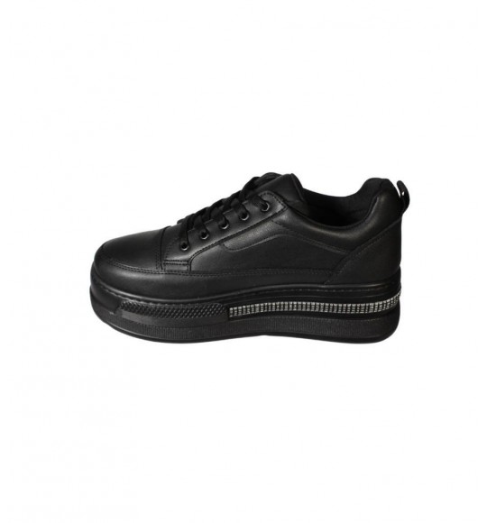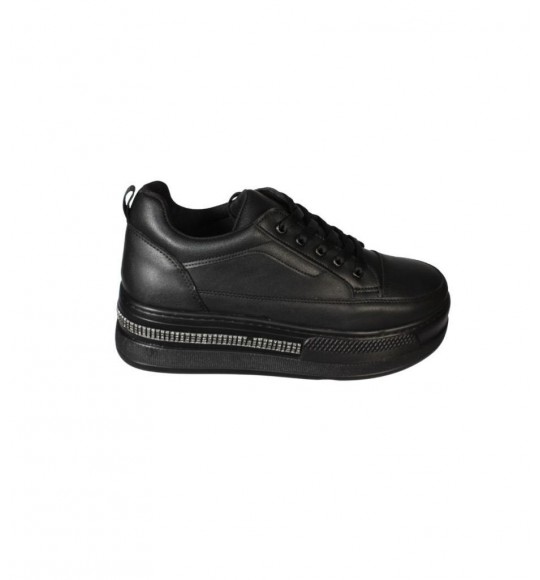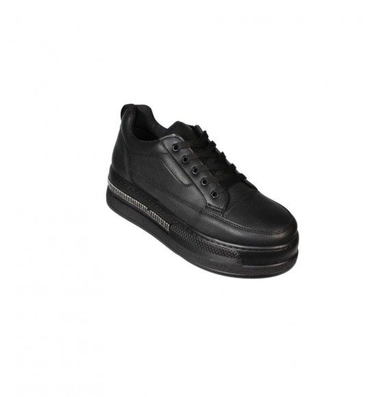 YAZKIŞ Kadın Siyah Beyaz Cilt 5cm Kalın Taban Bağcıklı Tabanı Taşlı Sneaker Spor Ayakkabı