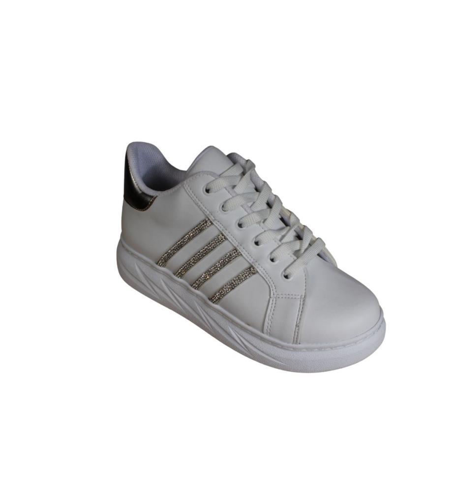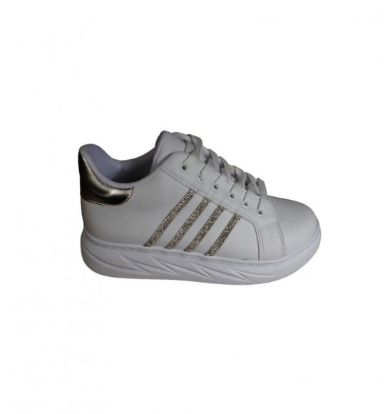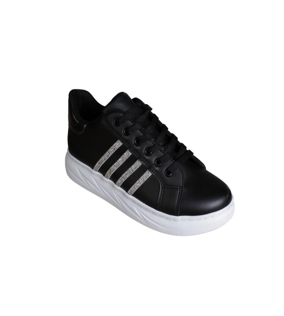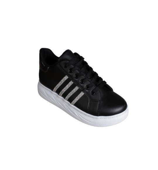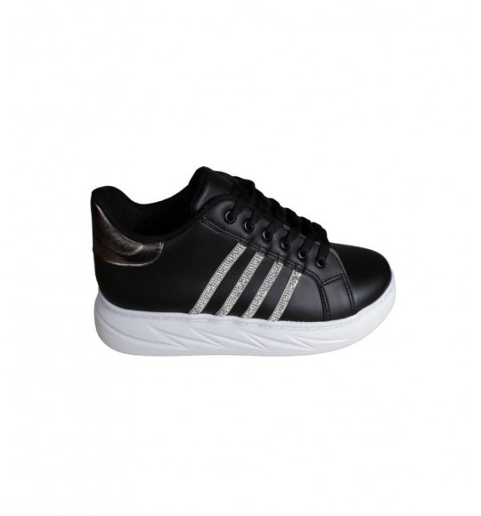 YAZKIŞ Kadın Siyah Beyaz Cilt Yanı Taşlı Kalın Taban Fasıhon Günlük Spor Ayakkabı