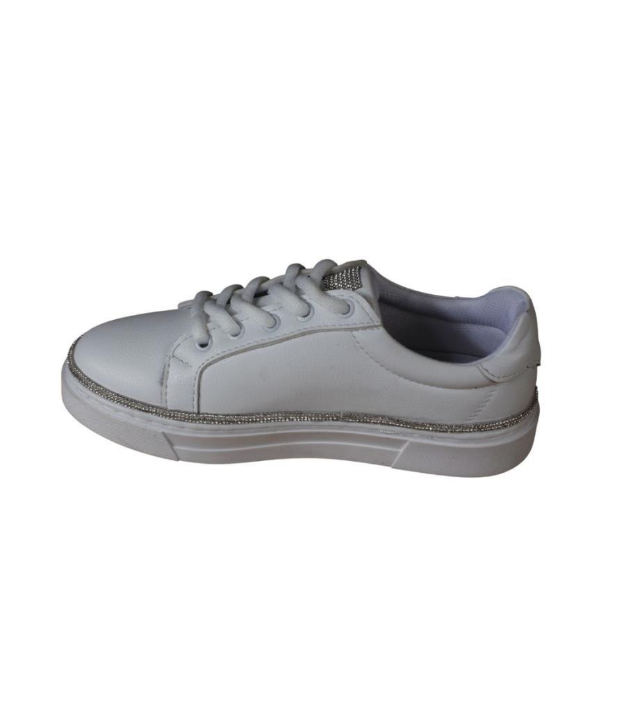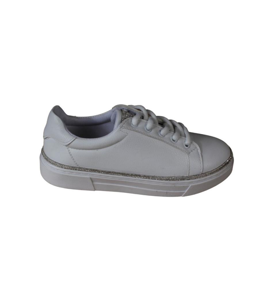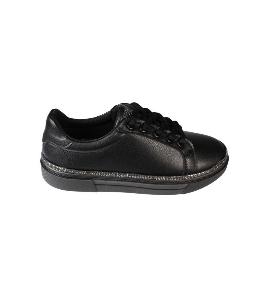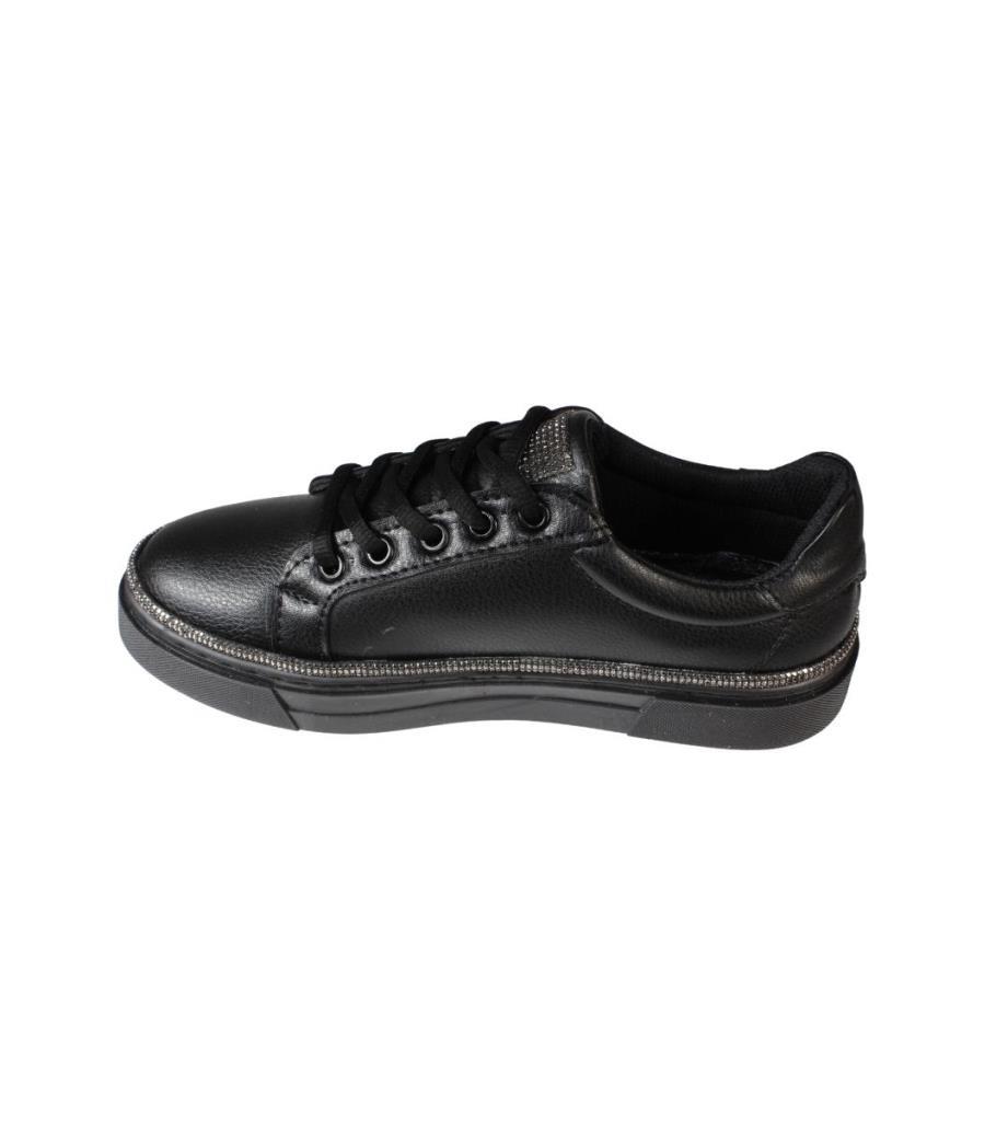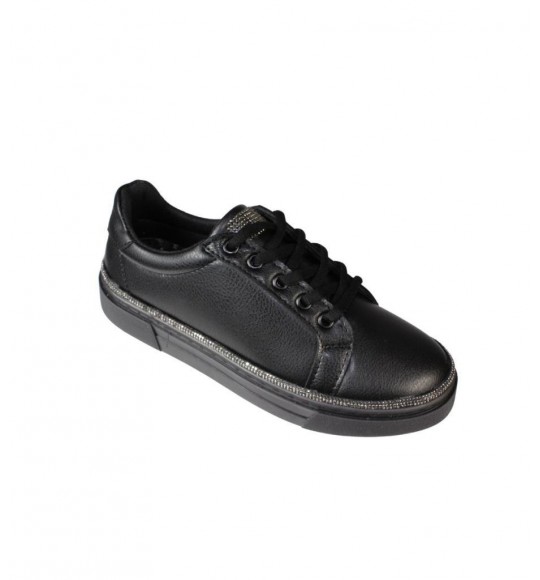 YAZKIŞ Kadın Siyah beyaz Cilt Yanları ve Dilleri Taşlı Sneaker Spor Ayakkabı