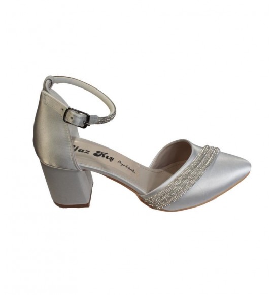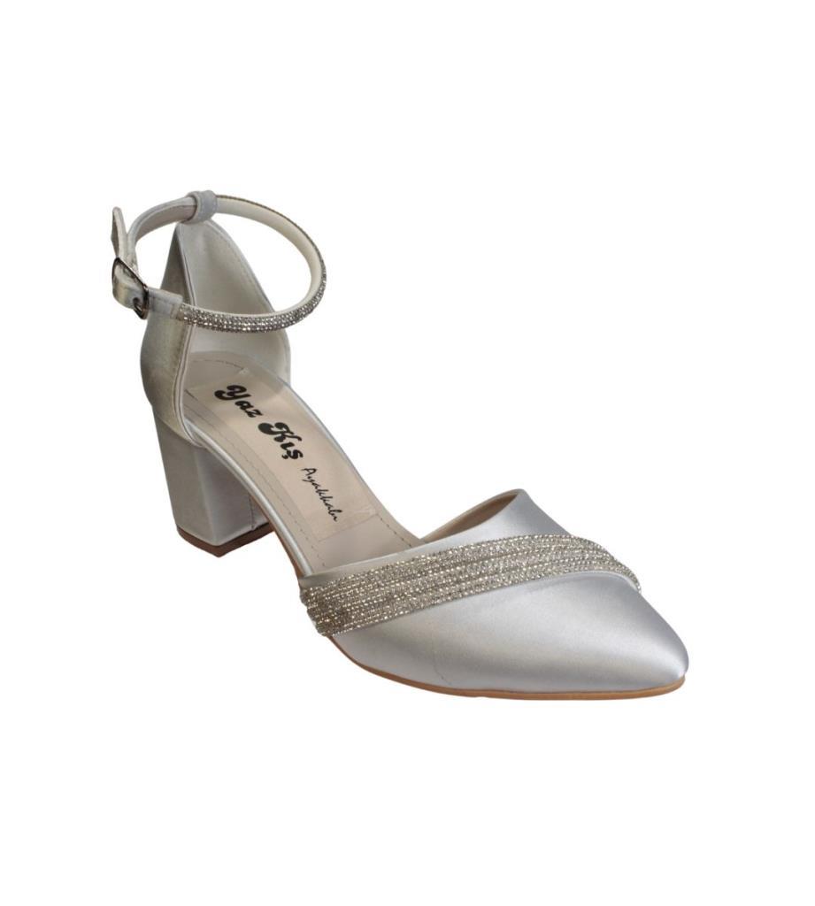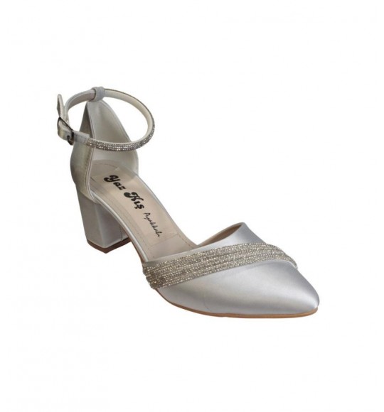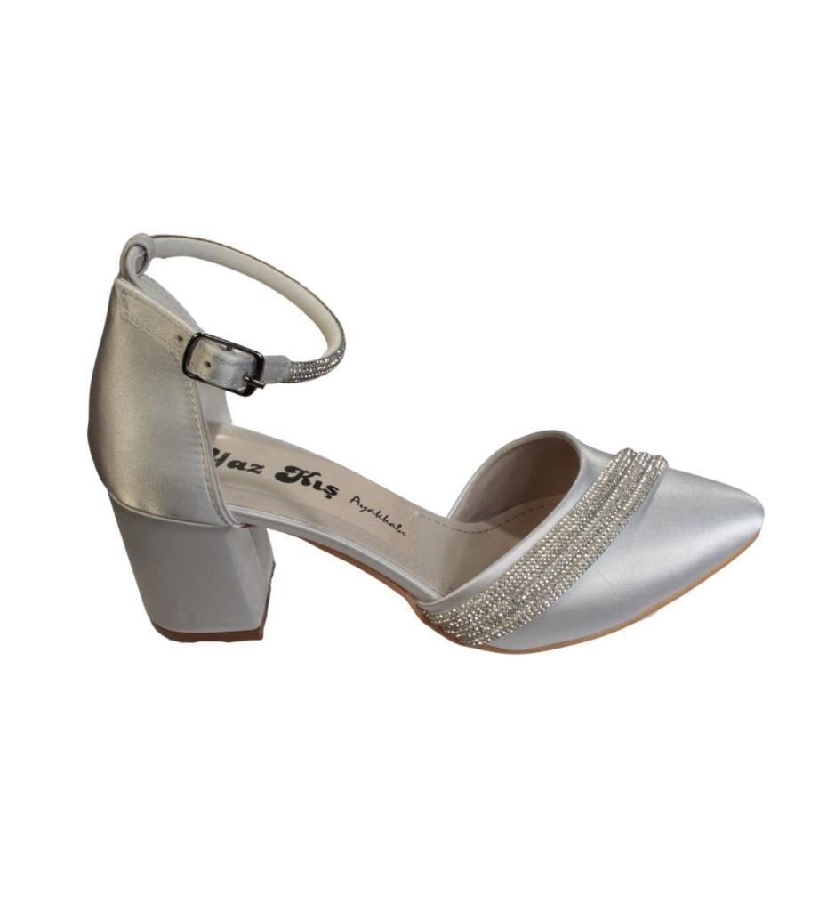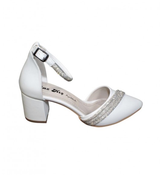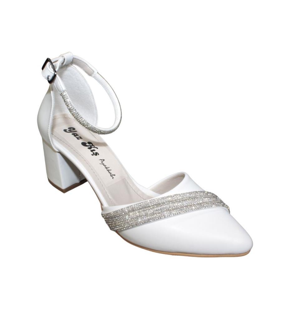 YAZKIŞ Kadın Siyah Beyaz Gümüş Üzeri Bileği Taşlı 5cm Kalın Topuk KarnıYarık Düğün Nişan Abiye Ayakkabı