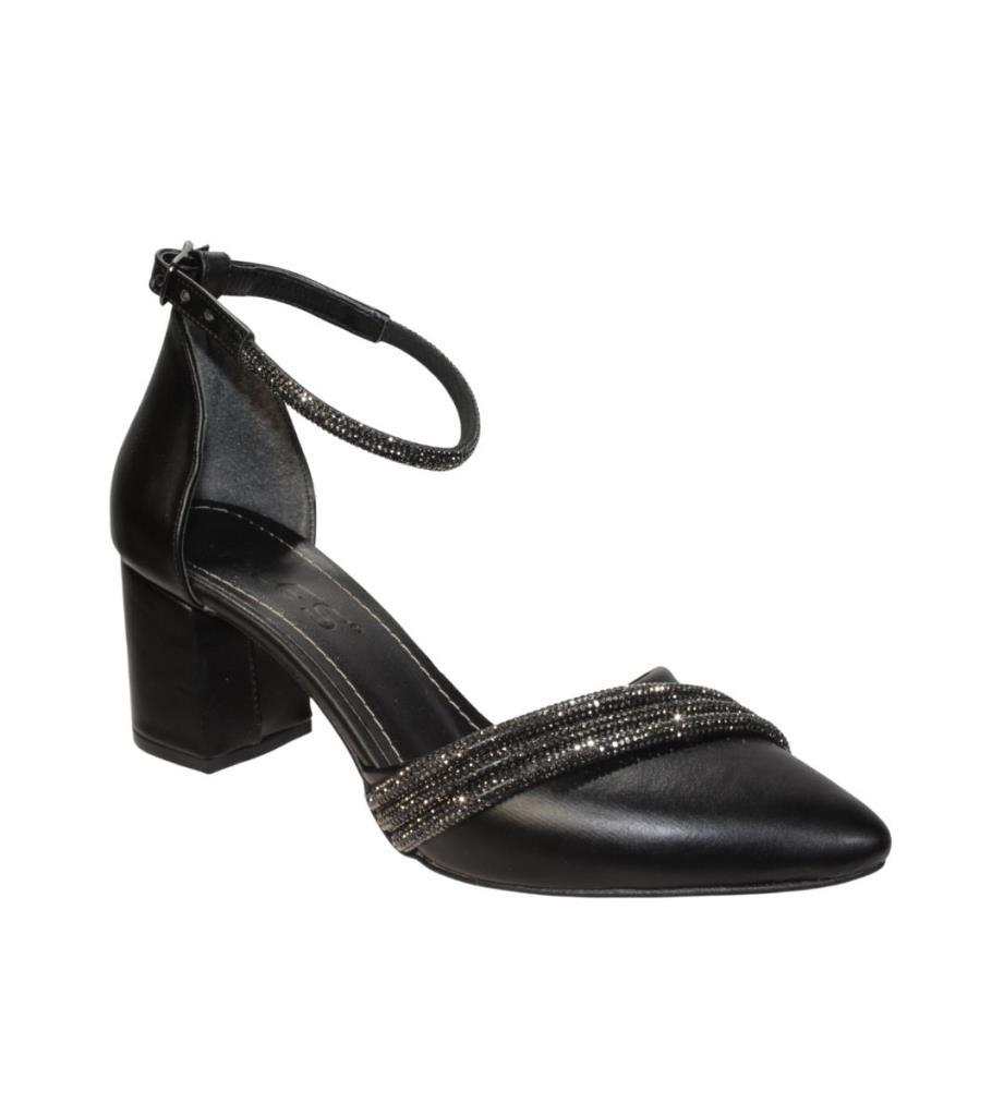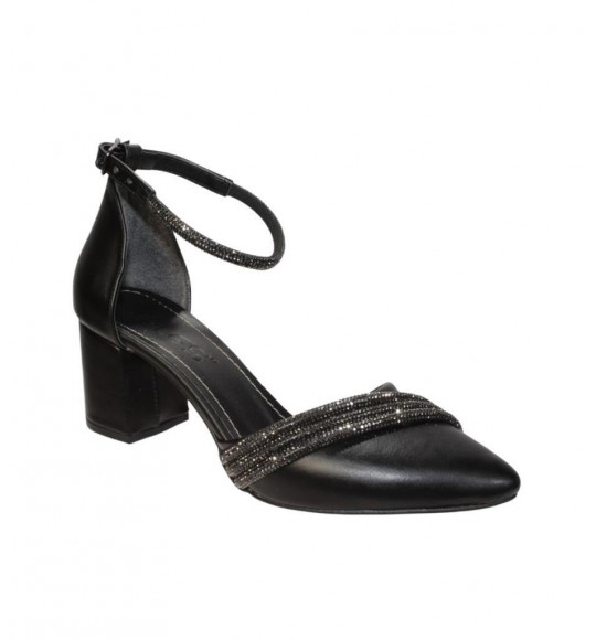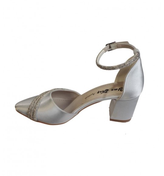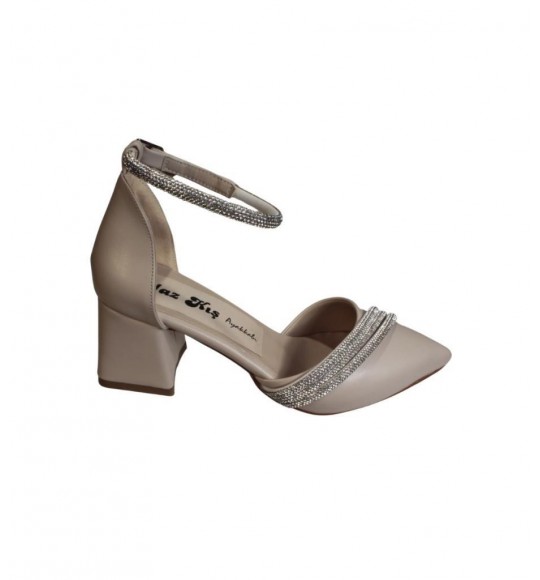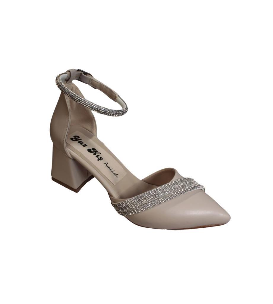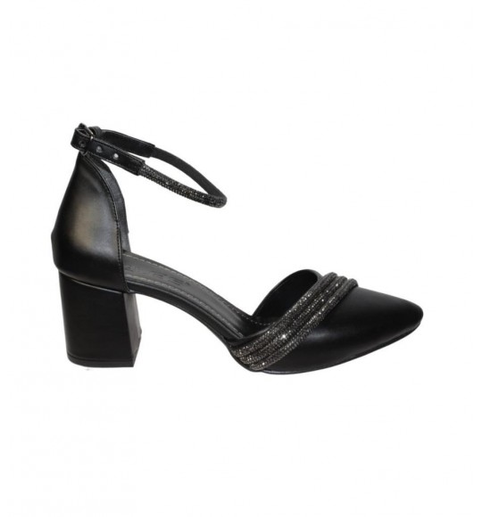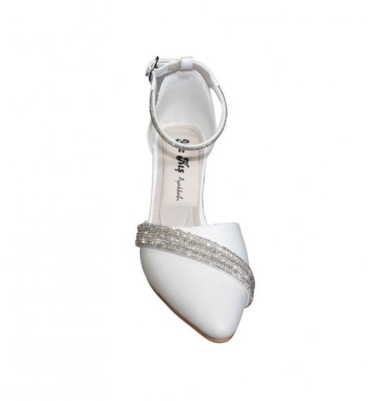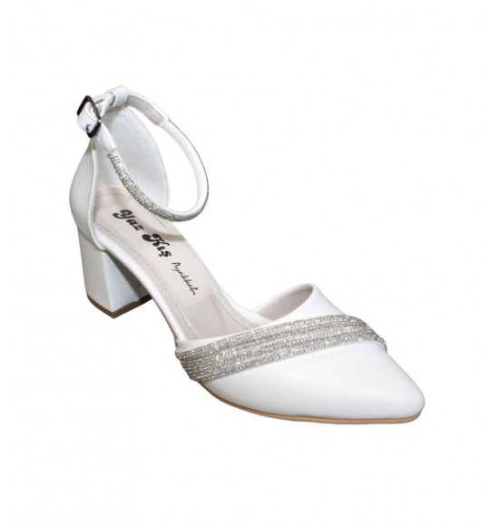 YAZKIŞ Kadın Siyah Beyaz Gümüş Üzeri Bileği Taşlı 5cm Kalın Topuk KarnıYarık Düğün Nişan Abiye Ayakkabı