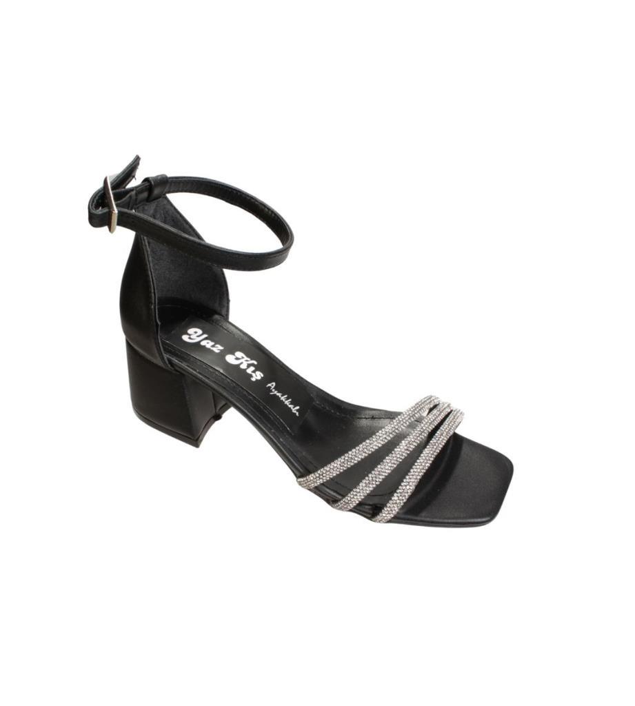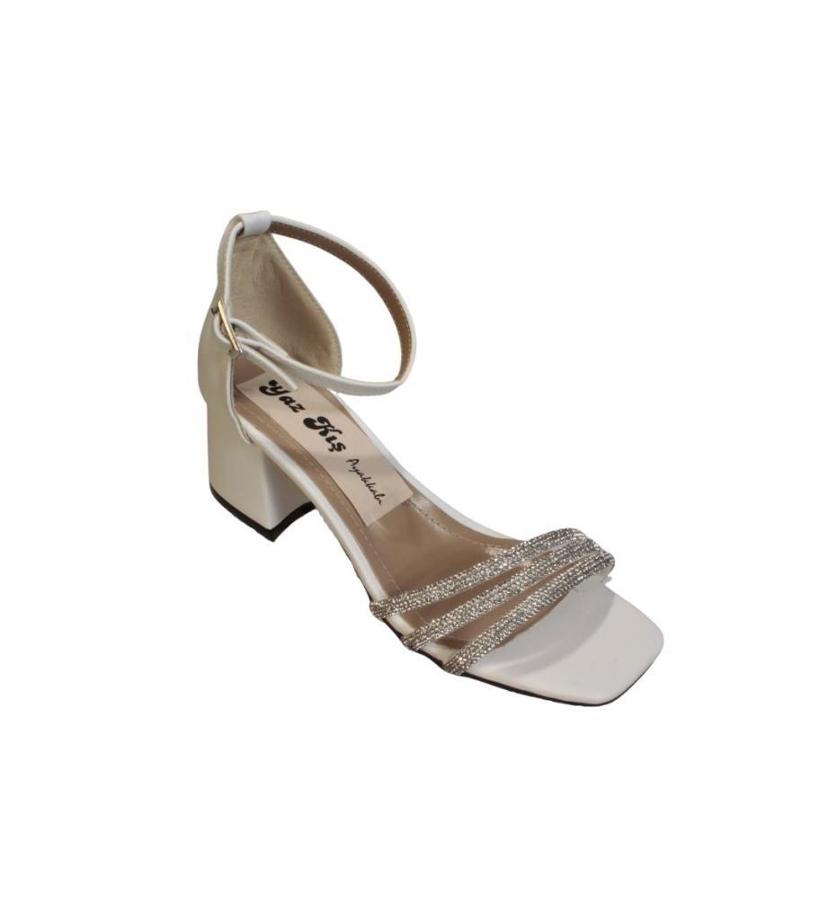 YAZKIŞ Kadın Siyah Beyaz Krem Ten 3bilyeli Üzeri Taşlı 5cm Kalın Topuk Düğün Nişan abiye Ayakkabı