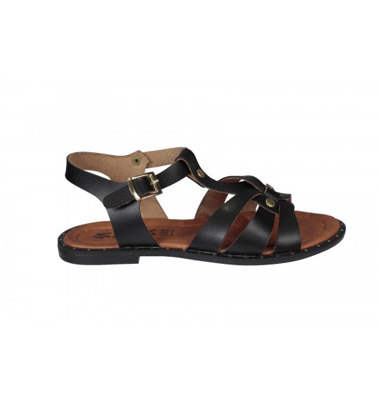 YAZKIŞ Kadın Siyah Beyaz Siyah Üzeri Şeritli Düz Sandalet