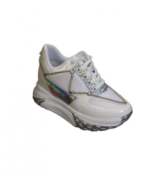 YAZKIŞ Kadın Siyah Beyaz Üzeri Taş Detaylı Paraşüt Kumaş 5cm Kalın Comfort Taban Fashıon Spor Ayakkabı
