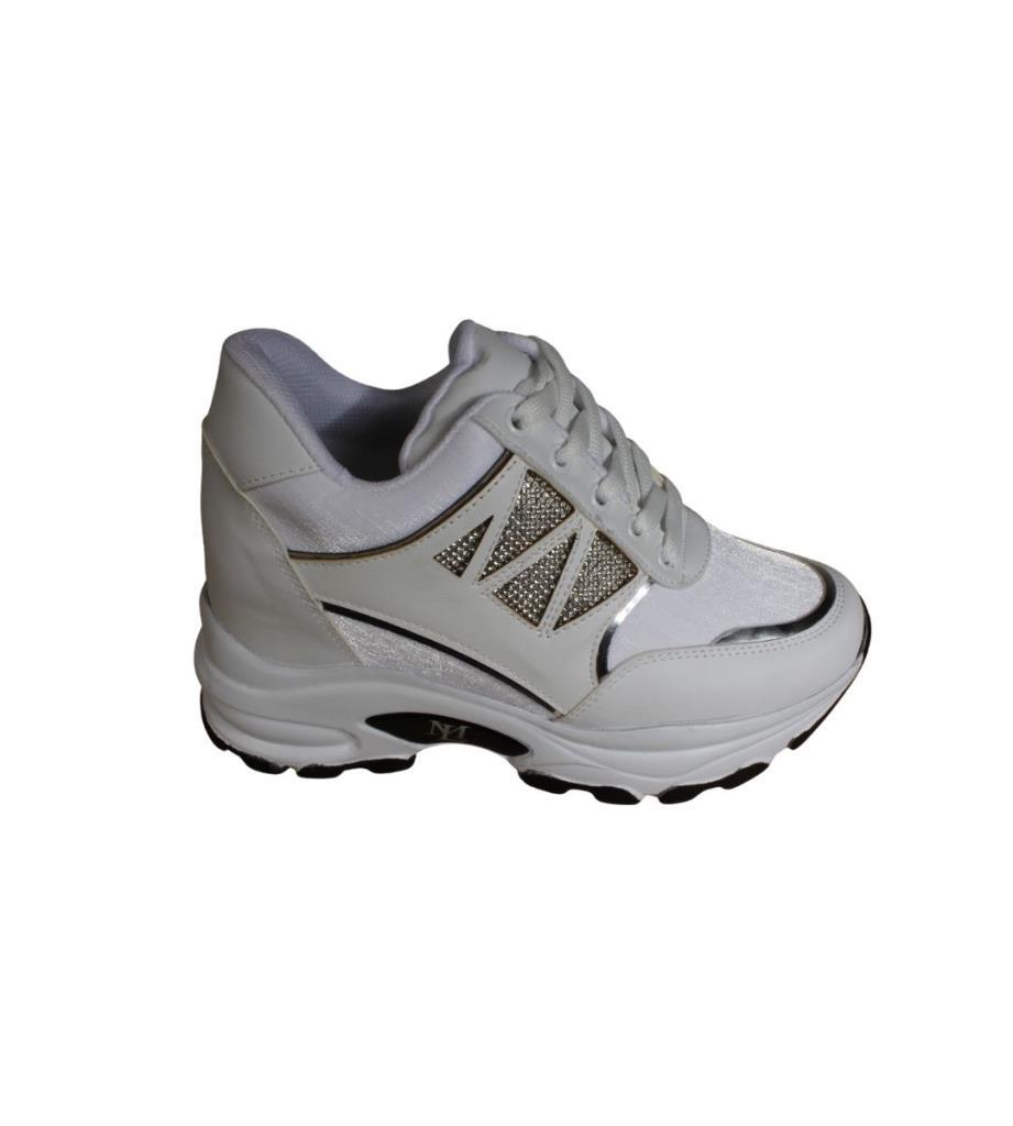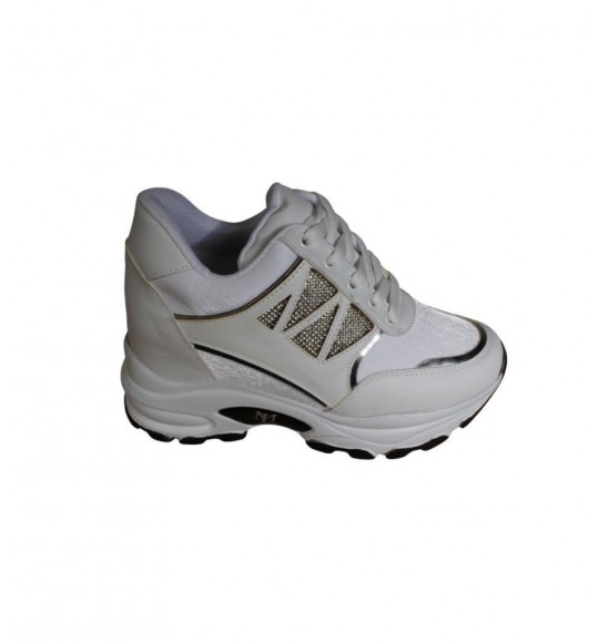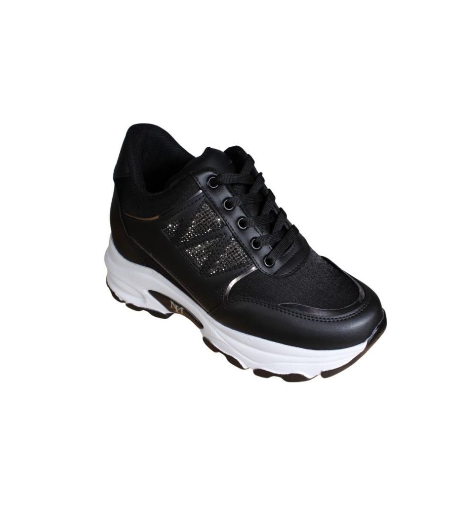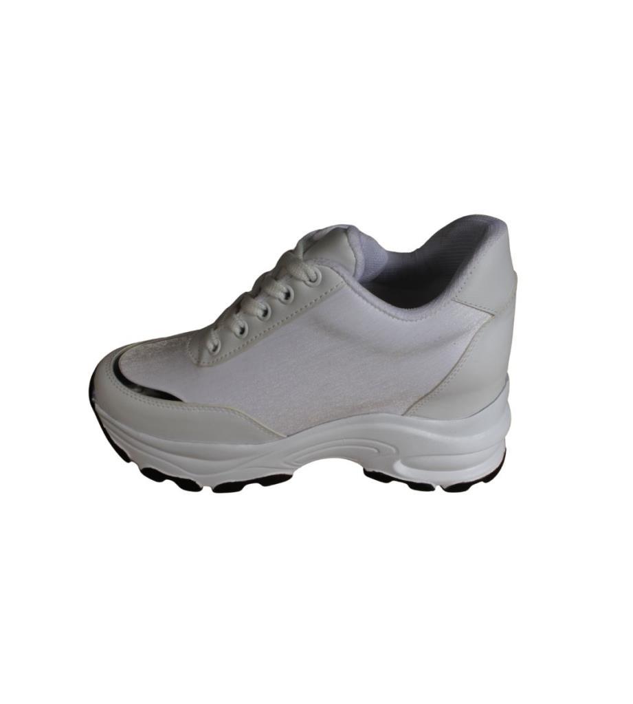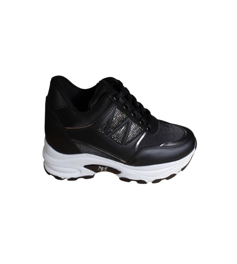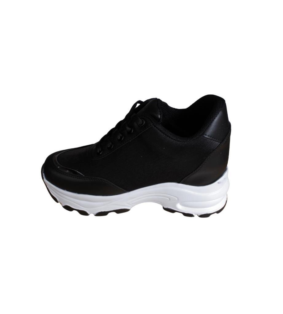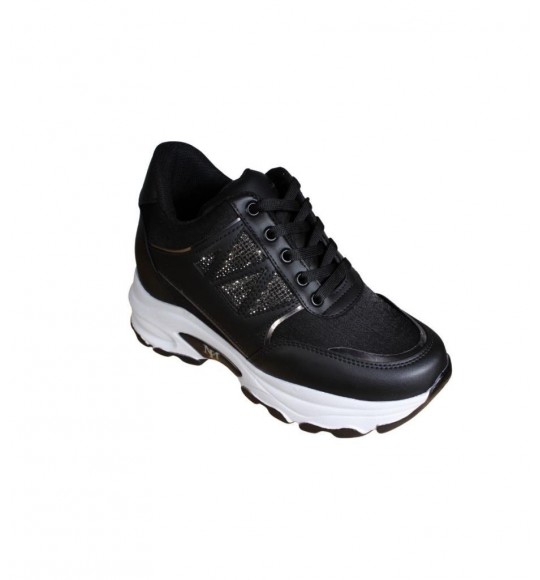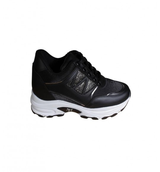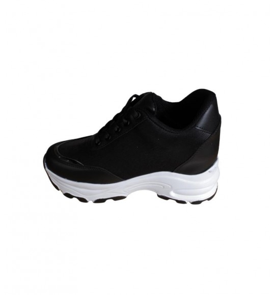 YAZKIŞ Kadın Siyah Beyaz Yanı Taşlı İçten 8Cm Topuklı Fashıon Spor Ayakkabı