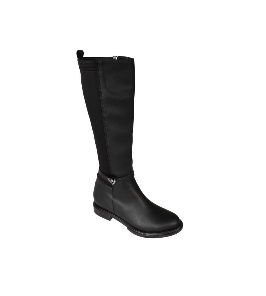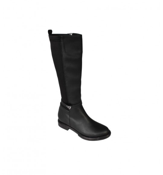 YAZKIŞ Kadın Siyah Cilt Arkası Streç Esnek Kumaş 38 cm Bilek Boyu Yandan V Tokalı Dğz Taban Çizme