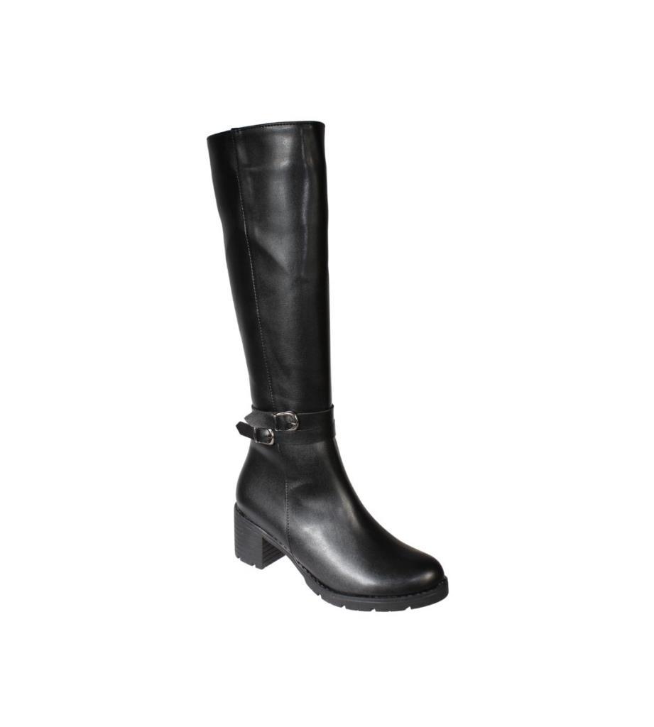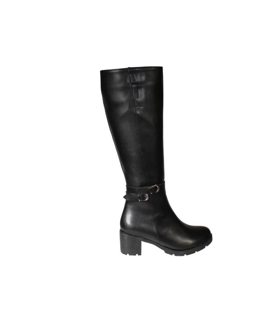 YAZKIŞ Kadın Siyah Cilt Kenarı Tokalı 36cm Boy Uzunluğu 6 cm Kalın Topuklu Çizme