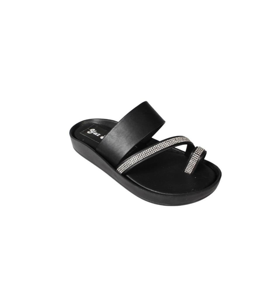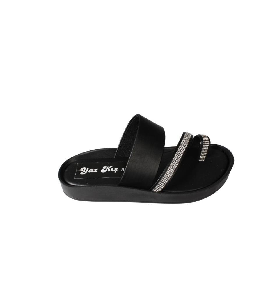 YAZKIŞ Kadın Siyah cilt Parmak Arası Taşlı Geçkili Terlik