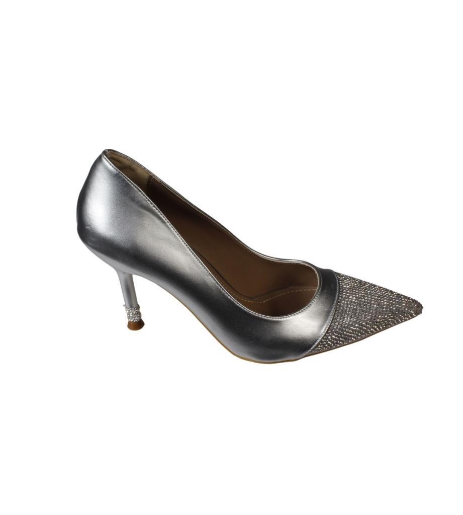 YAZKIŞ Kadın Siyah Gümüş Cilt Önü ve Topuğu Taşlı 9cm İnce Topuk Stiletto Ayakkabı