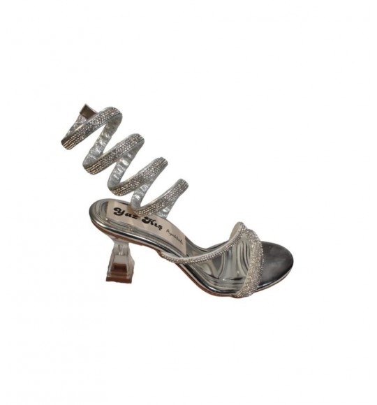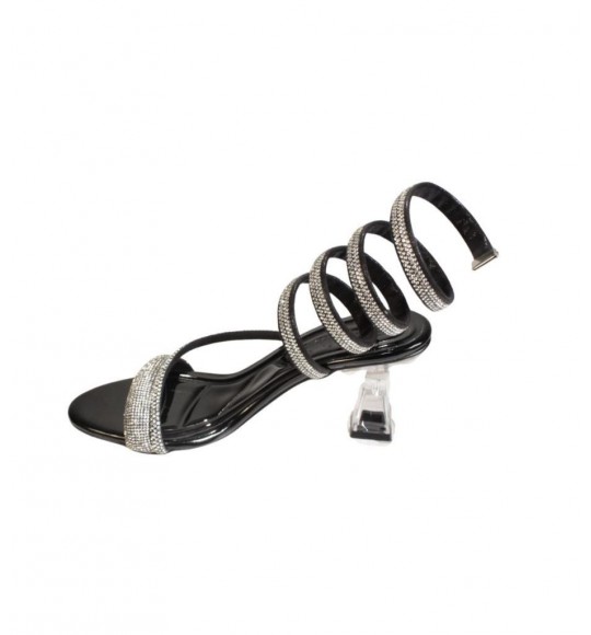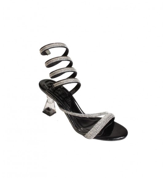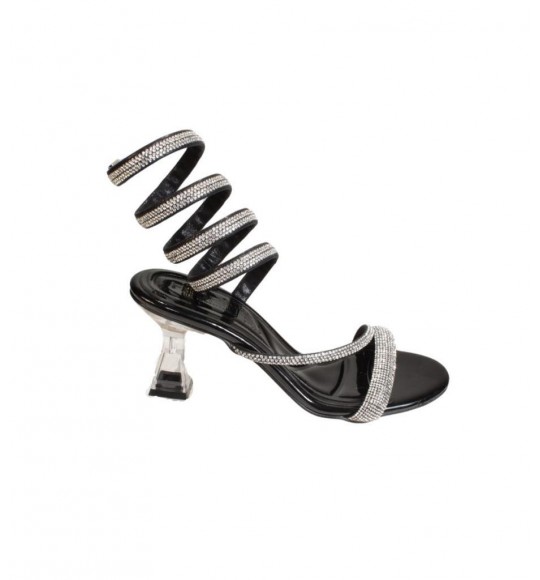 YAZKIŞ Kadın Siyah Gümüş Rugan üzeri Bileği Taşlı Bileği Dolamalı 8cm Şeffaf Kadeh Topuk Abiye Ayakk