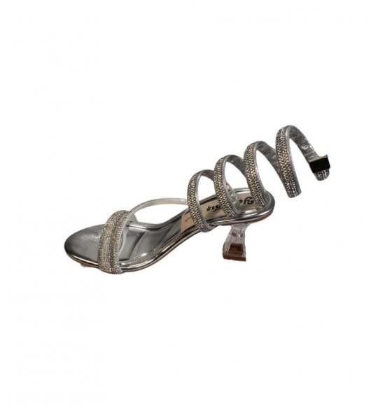 YAZKIŞ Kadın Siyah Gümüş Rugan Üzeri Bileği Taşlı Bileği Dolamalı 8cm Şeffaf Kadeh Topuk Abiye Ayakkabı