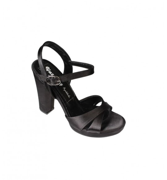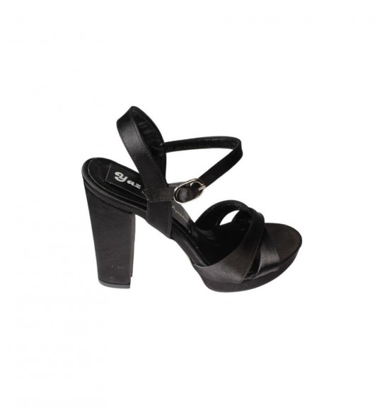 YAZKIŞ Kadın Siyah Gümüş Saten Çapraz Bantlı 10cm Kalın Topuk 3 cm Pltform Topuklu Abiye Ayakkabı