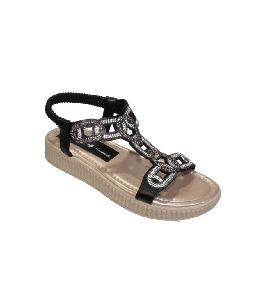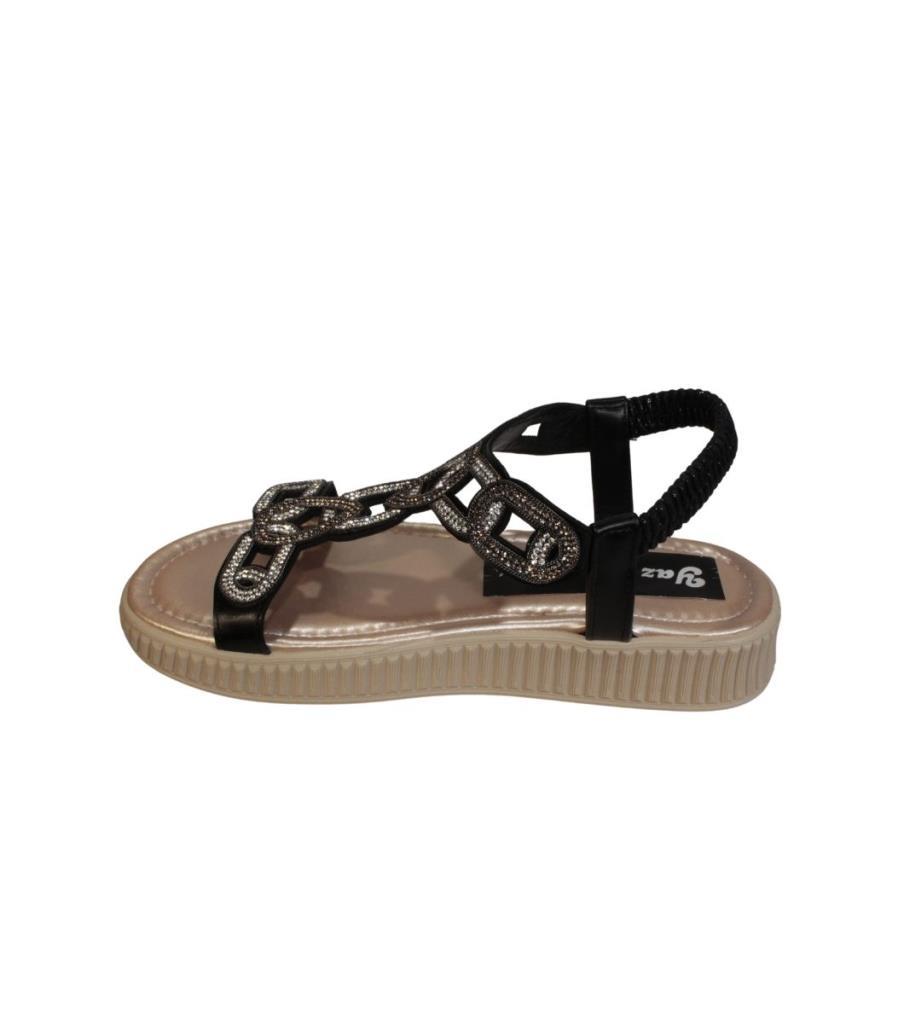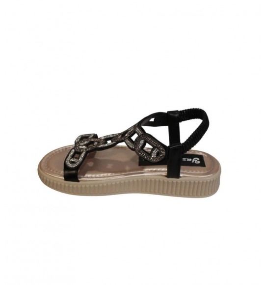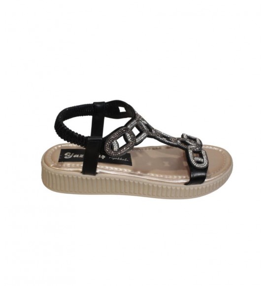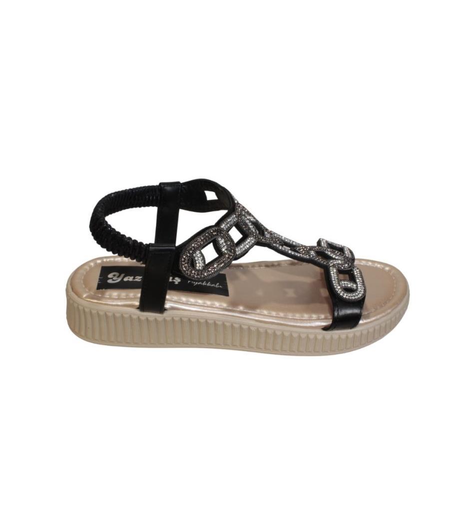 YAZKIŞ Kadın Siyah Gümüş Üzeri Taşlı Bileği Lastikli 3cm Kalın Düz Taban Sandalet
