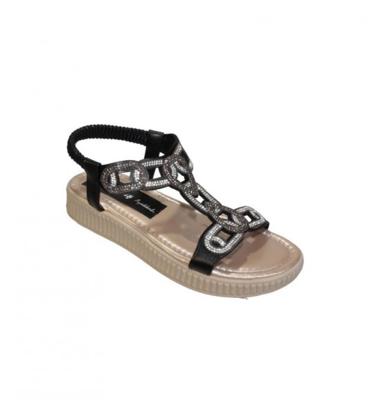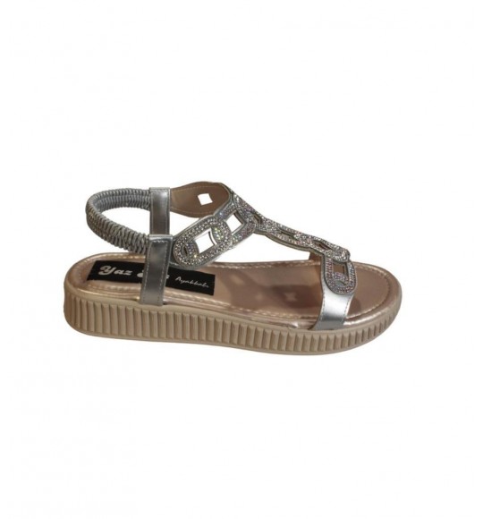 Etiketler: YAZKIŞ Kadın Siyah Gümüş Üzeri Taşlı Bileği Lastikli 3cm Kalın Düz Taban Sandalet