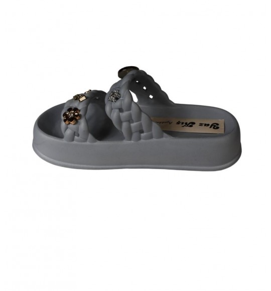 - Gri rengiyle zamansız bir şıklık sunan bu terlik, her mevsim rahatlıkla tercih edebileceğiniz bir seçenektir.